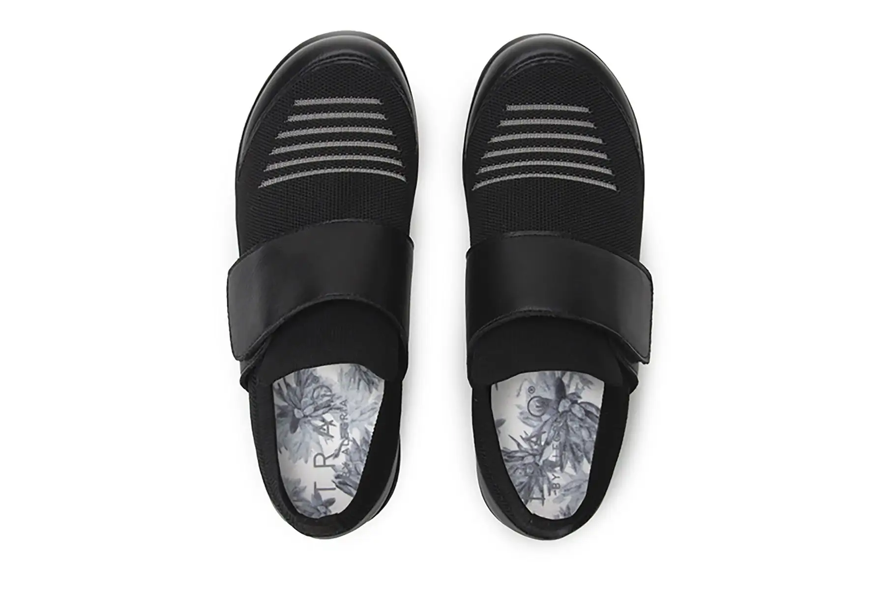 Put your steps in without wearing a watch with the women’s Alegria Traq Qwik smart walking shoe. The textile upper features an adjustable hook and loop closure for a customized fit. The cushioned footbed supports the foot from heel to toe, while the durable outsole provides traction and stability. The Q Chip technology tracks every step throughout the day and never has to be replaced or charged!