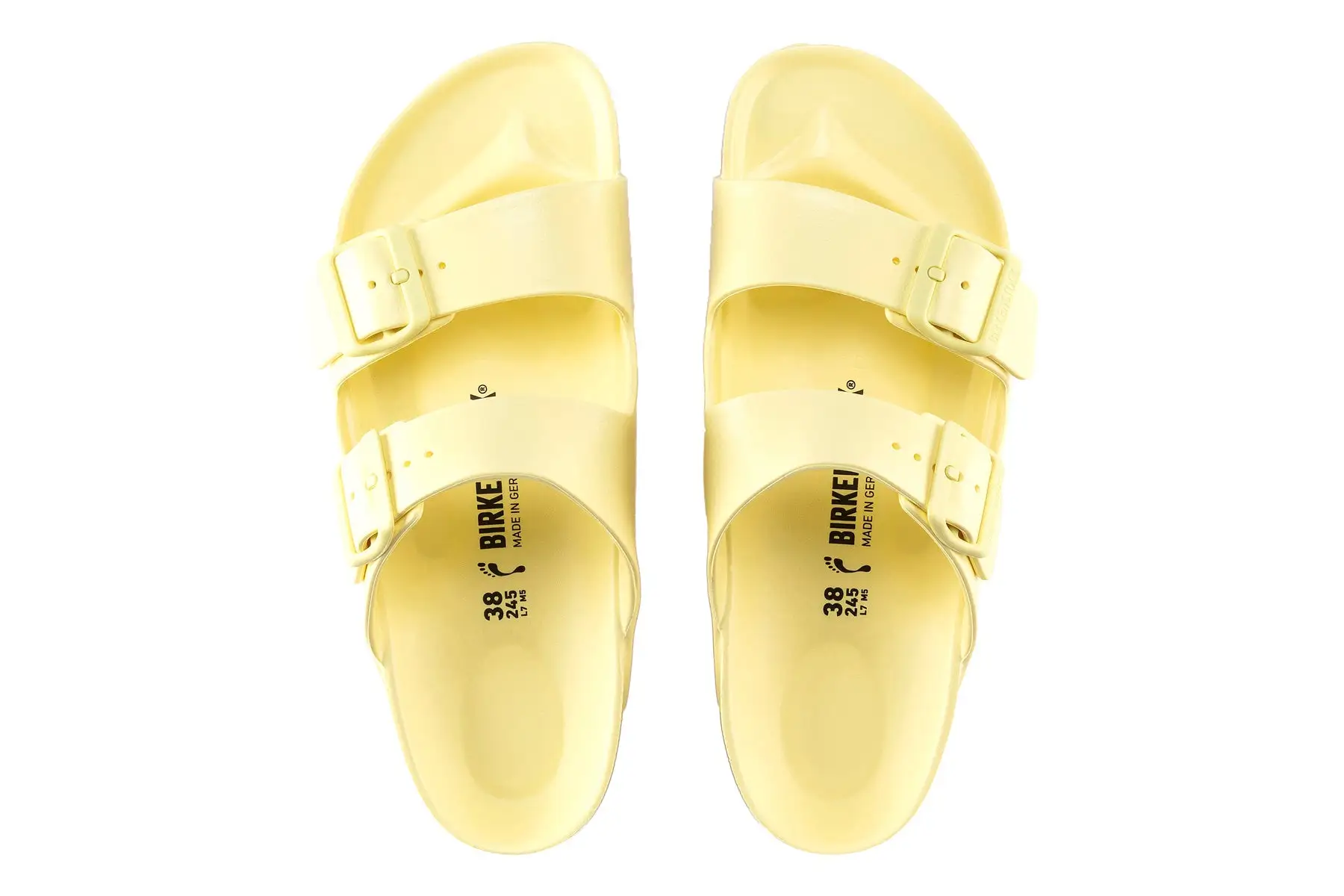Birkenstock Arizona EVA is a stylish update to our timeless Arizona sandal. Featuring an EVA upper, insole, footbed and outsole, these durable sandals are both lightweight and flexible. Two adjustable straps  and an anatomically shaped Birkenstock footbed outlines these shock absorbing, waterproof and skin-friendly sandals.