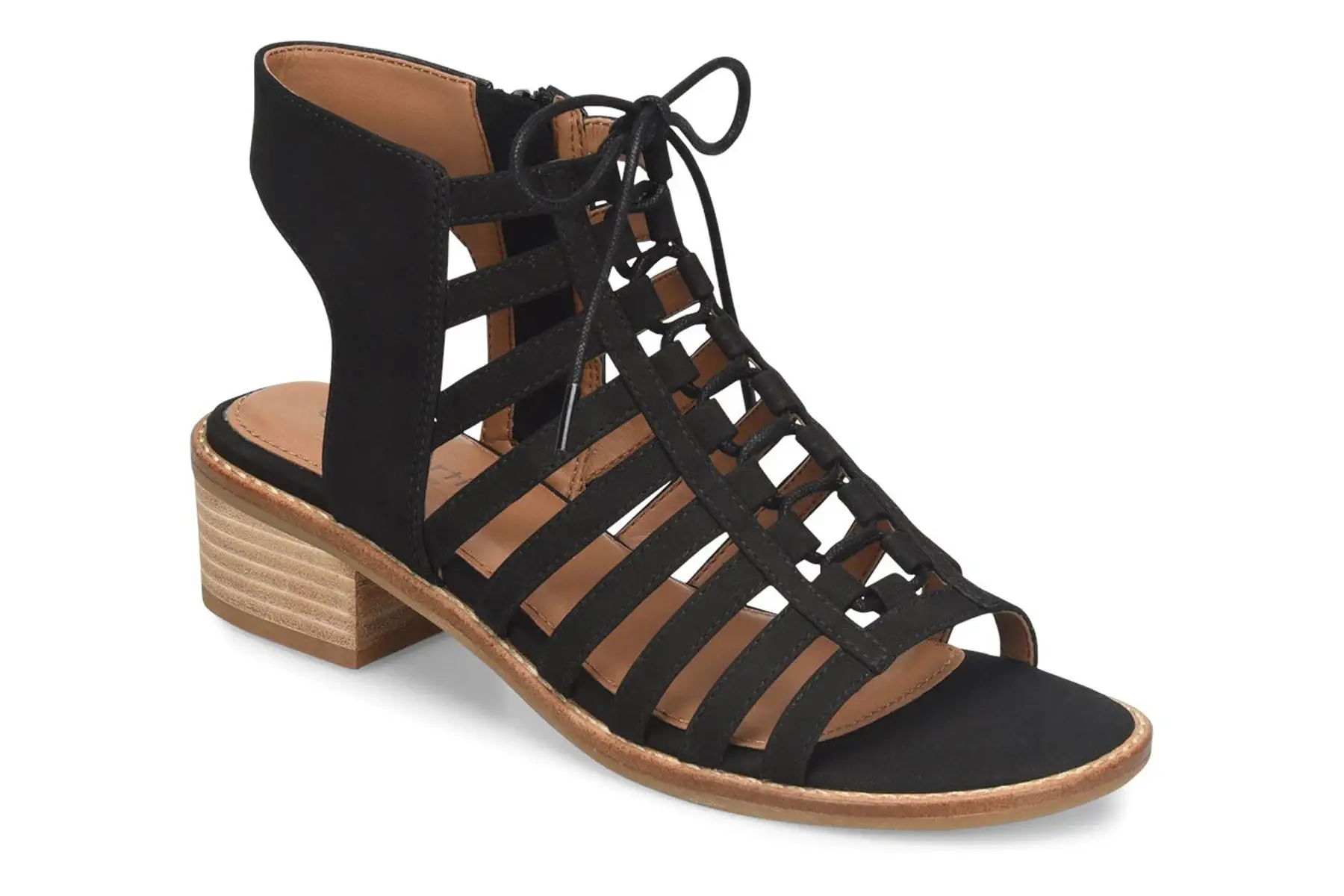 Dress up any outfit with the women’s Comfortiva Blossom sandal. The leather upper features an adjustable ghillie lace up and a side zip up closure for easy on and off. The padded footbed supports the foot from heel to toe, while the durable TPR outsole provides traction and stability. This warm weather sandal can easily be paired with any outfit, making it a wardrobe staple.