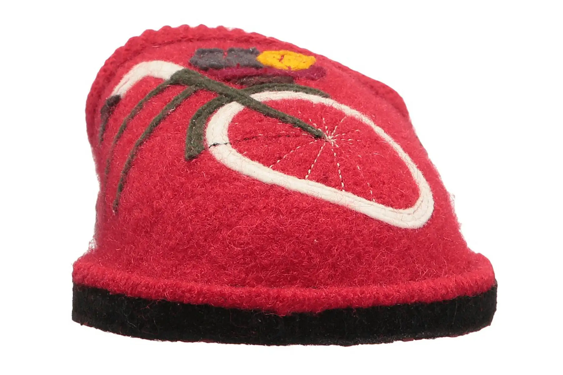 Perfect for indoor lounging, the women’s Haflinger Bicycle slipper offers instant comfort and style. The natural wool upper offers breathability and softness, while the latex molded footbed with arch support delivers superior comfort. The double felt outsole with rubber traction dots provides grip.
