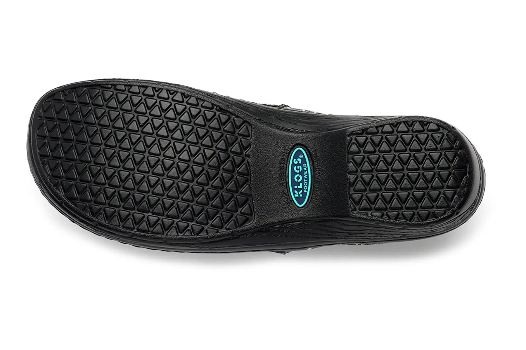 Klogs Footwear Mission is a comfortable work clog for long shifts. These shoes are slip and oil-resistant, non-marking, shock absorbent and orthotic friendly. Smooth leather uppers, a removable footbed, cushioned insole and contoured outsole will keep your feet happy all-day long.