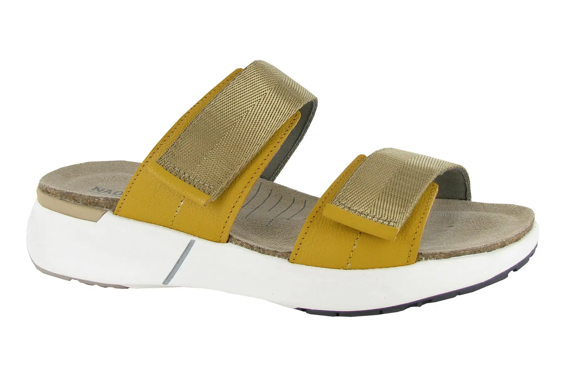Naot Calliope is a stylish, comfortable sandal with adjustable straps. A sturdy cork & latex footbed is wrapped in suede and molds to the shape of the foot. Featuring double hook & loop straps and a lightweight 1.5” rubber sole for arch support, these casual sandals are perfect for daytime adventures.