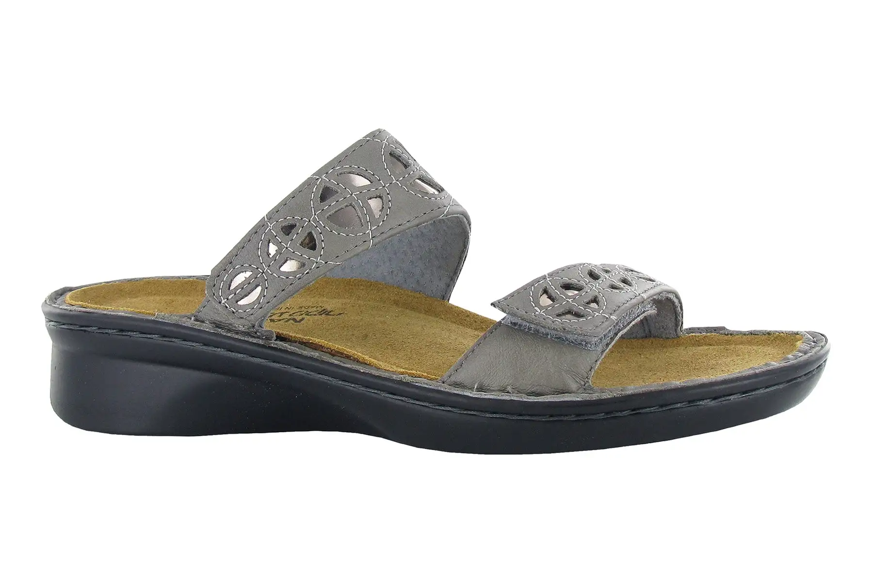 The women’s Naot Cornet slide sandal offers the perfect solution for relaxed comfort and casual style. The Cornet features a double hook and loop closure for adjustability, a removable cork and latex footbed and a durable polyurethane outsole for all-day walking support.