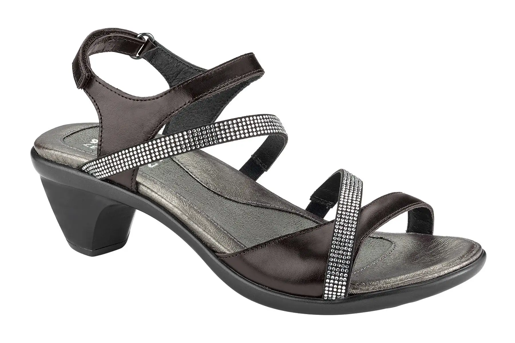 Dress up for any occasion in the women’s Naot Innovate heeled sandal. The strappy leather upper has chic rhinestones and a microfiber footbed cushions feet. A TPR outsole provides traction and stability, while the sole offers the look of a heel without the feel.