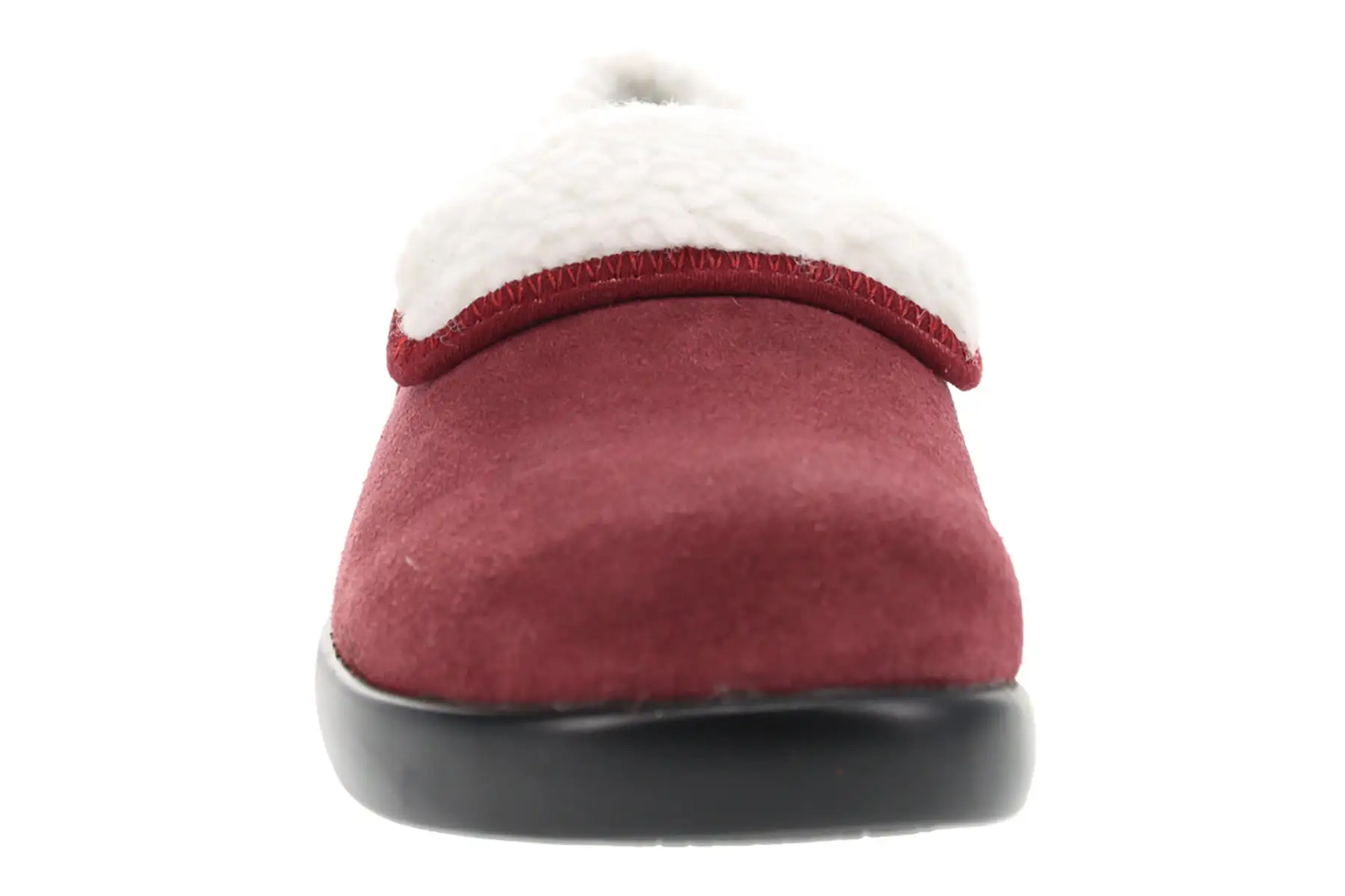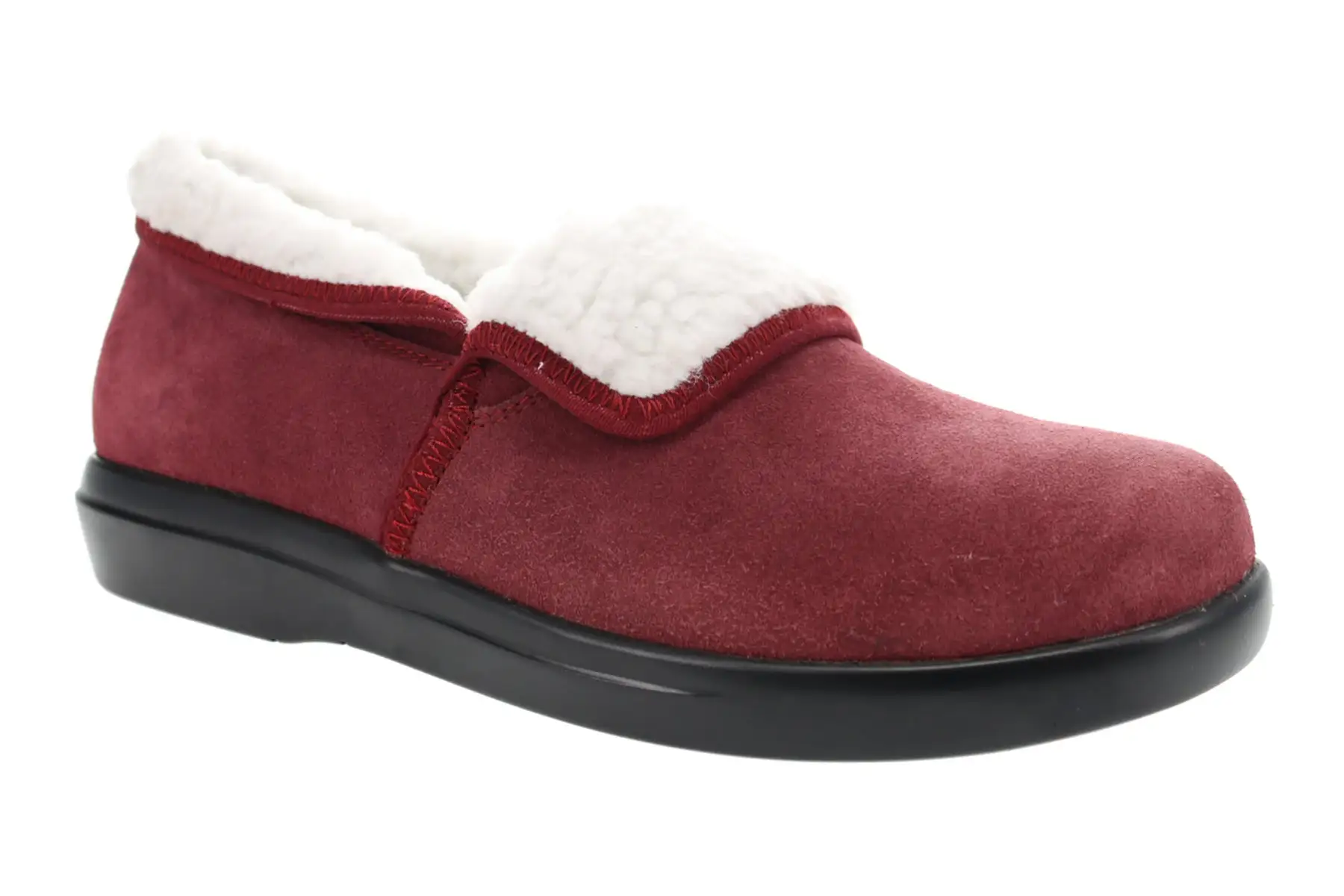 Propet Colbie is a warm and roomy slipper. Features include a suede upper with faux fur lining, slip-on construction, removable footbed and PU outsole. A high density PU foam ensures a cooler footbed, while the warm faux fur trim keeps feet warm during cold weather days.