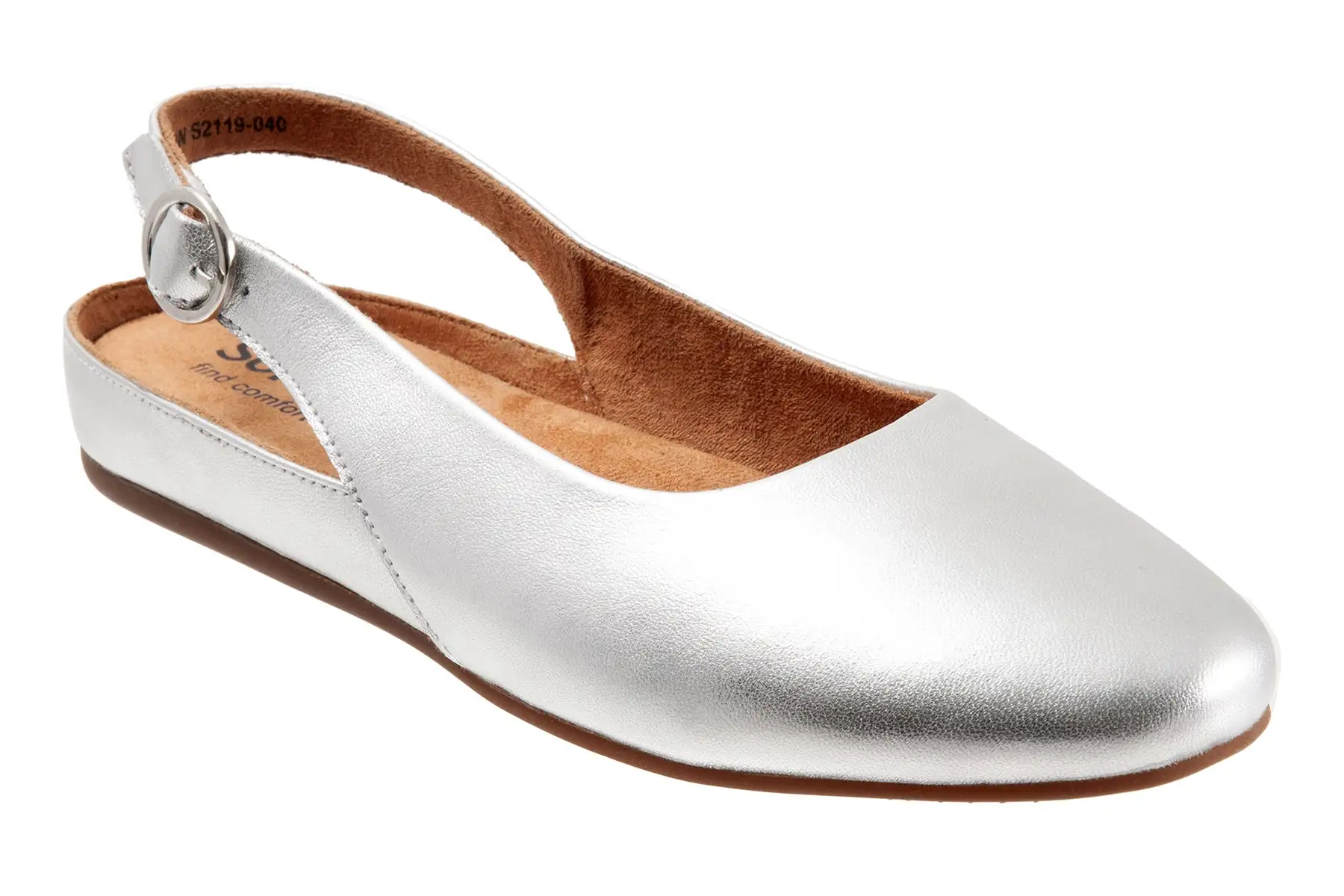 Versatile and summer-ready, this stylish slingback ballerina is a perfect compliment to her warm-weather wardrobe. A comfort-focused, round-toe flat with opened-up styling gives streamlined appeal for dressing up or down.