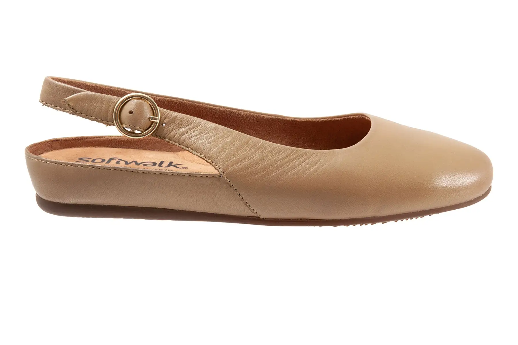 Versatile and summer-ready, this stylish slingback ballerina is a perfect compliment to her warm-weather wardrobe. A comfort-focused, round-toe flat with opened-up styling gives streamlined appeal for dressing up or down.