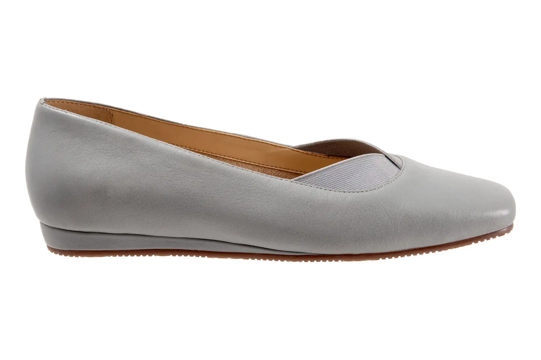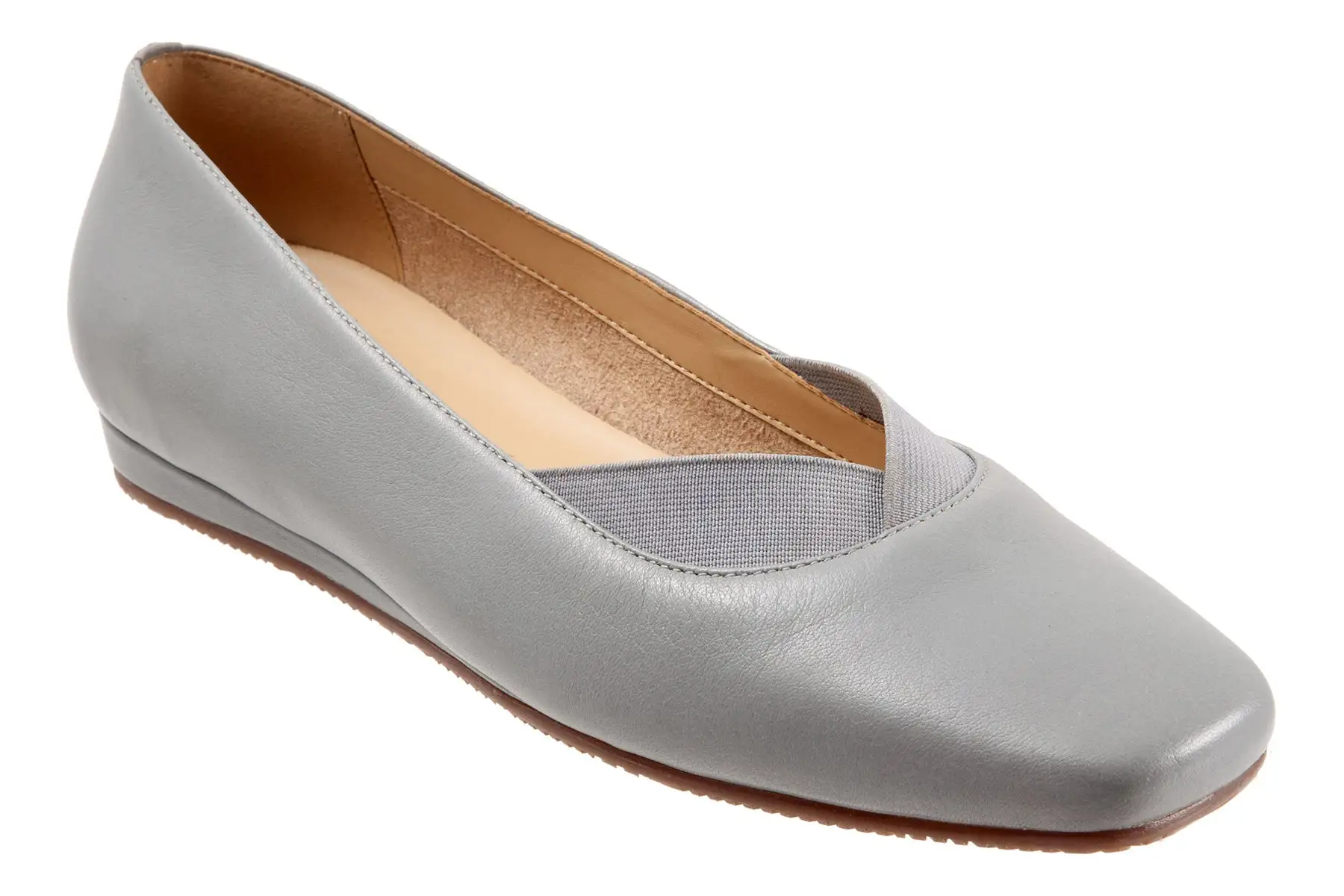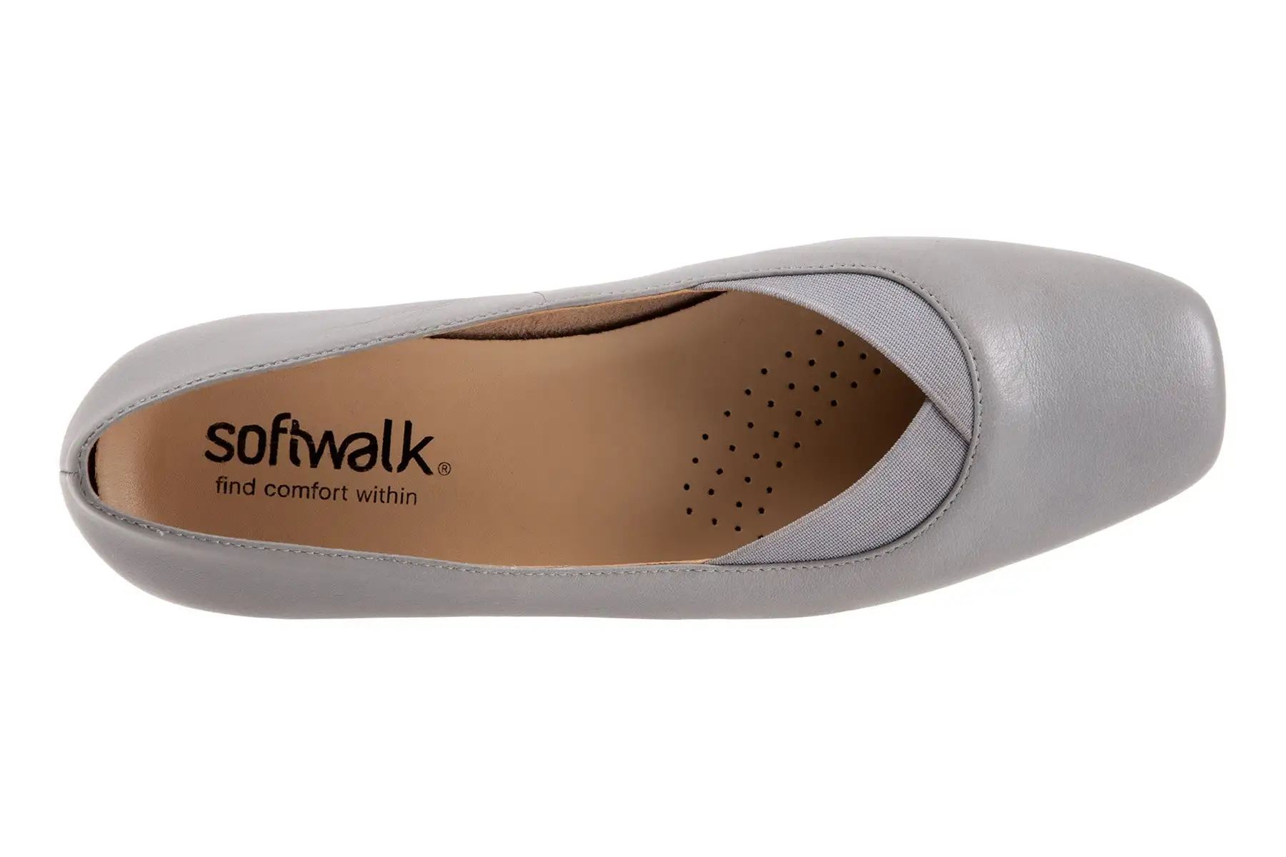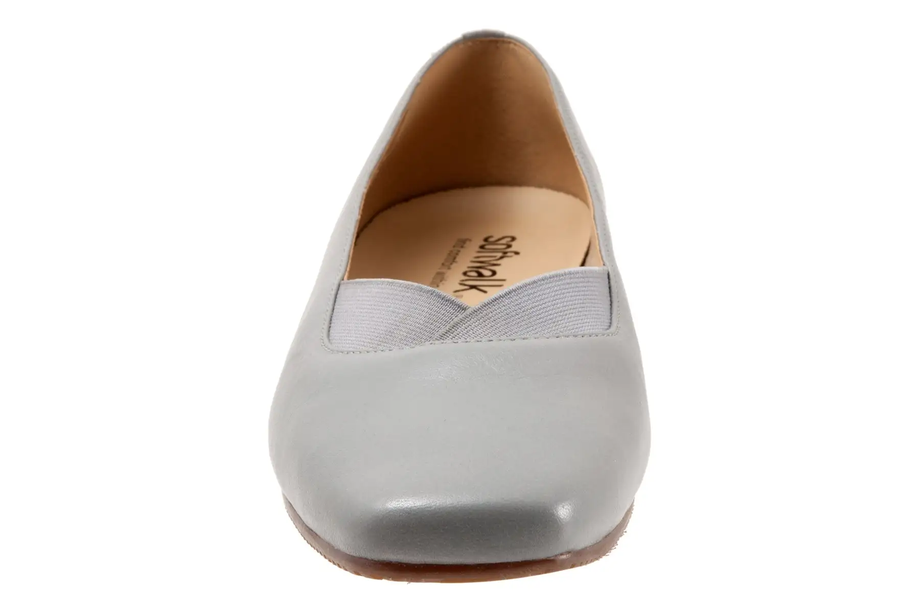 Softwalk Viana is a comfortable square-toe flat. A leather upper, removable footbed, cushioned footbed and flexible rubber outsole outlines these elegant flats. Other features include a microfiber upper lining, elastic goring and a lined and cushioned insole.
