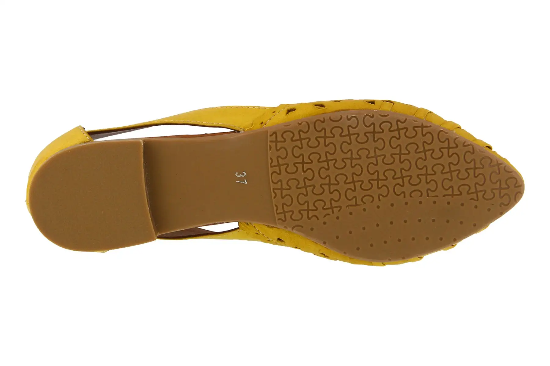 Elegant slip-on D’orsay flat featuring a scalloped topline with cutouts and leather weaving design.