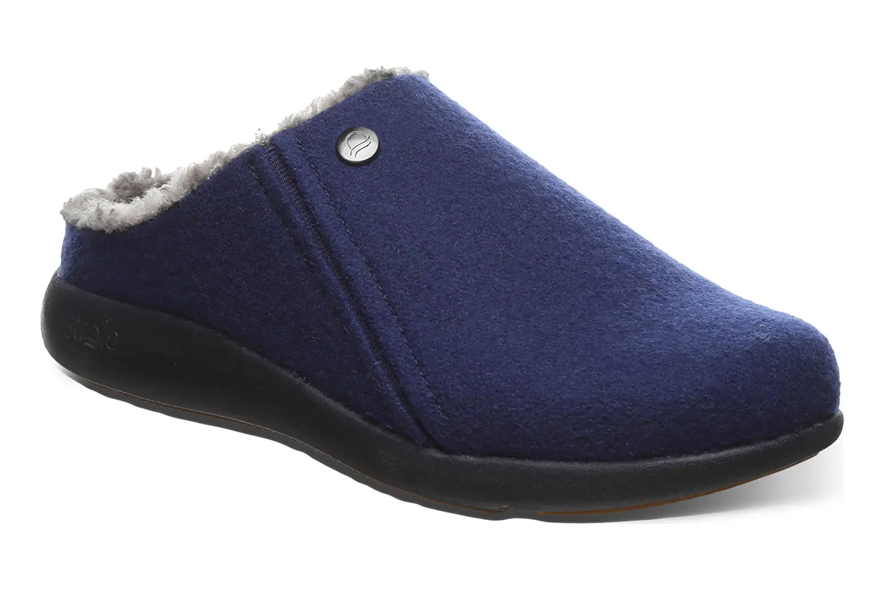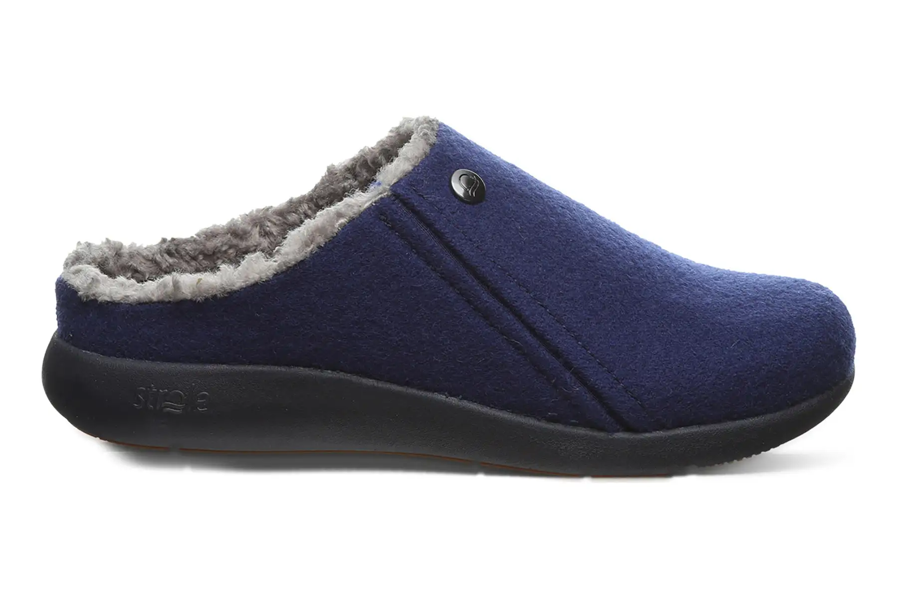 Strole Snug is a warm and cozy clog slipper. Prominent features include soft Melton wool uppers, faux fur lining and footbed and durable rubber outsole. Impact-reducing Poron inserts, Soft Stride support system and closed toe clog construction outlines these comfy slippers.