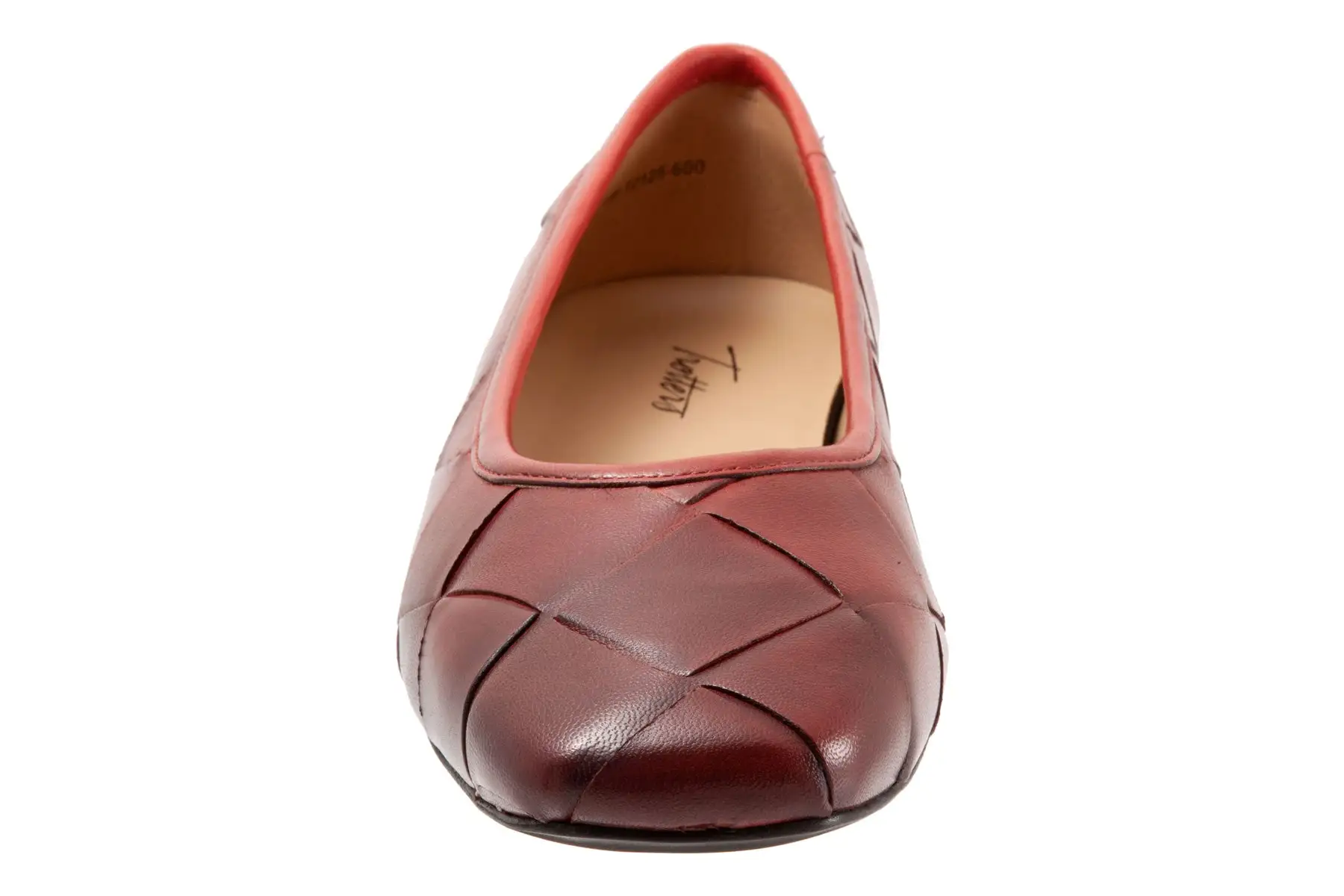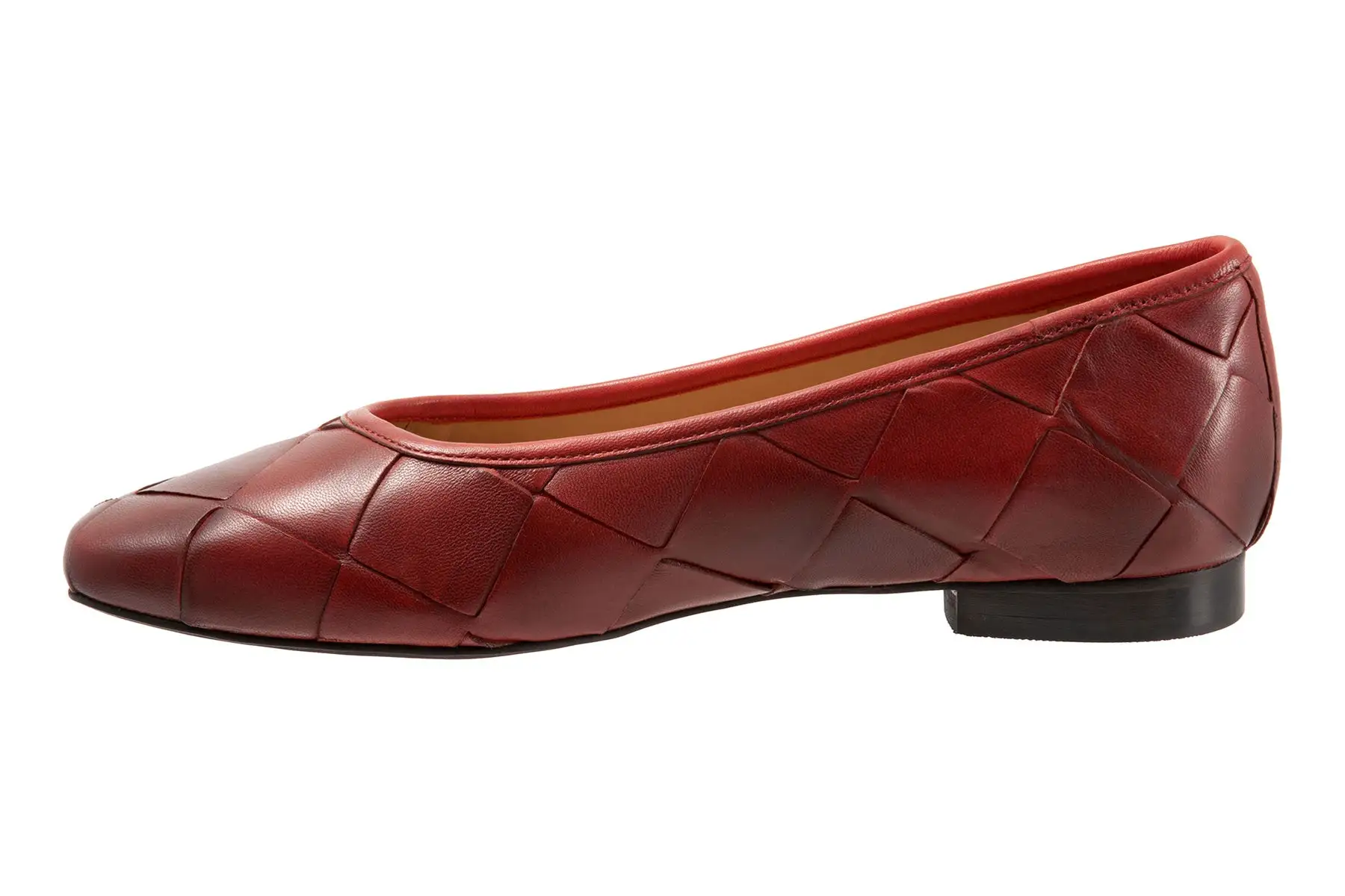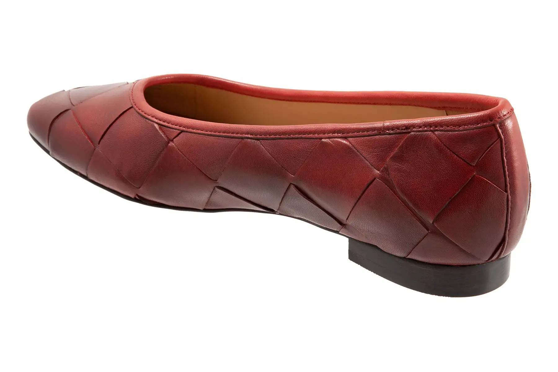 Oversized woven detailing adds dramatic flare to the Hanny, a polished square-toe flat with a low stacked heel. Premium burnished leather highlights the artisan feel of this modern ballerina.