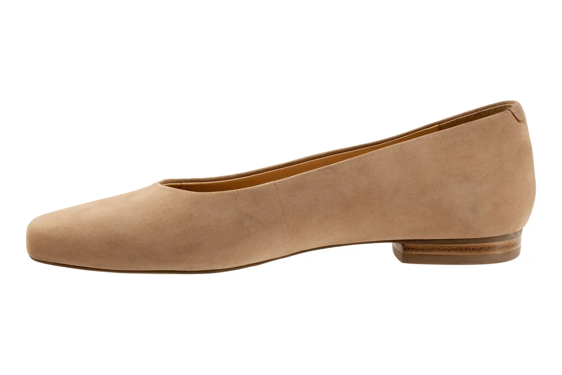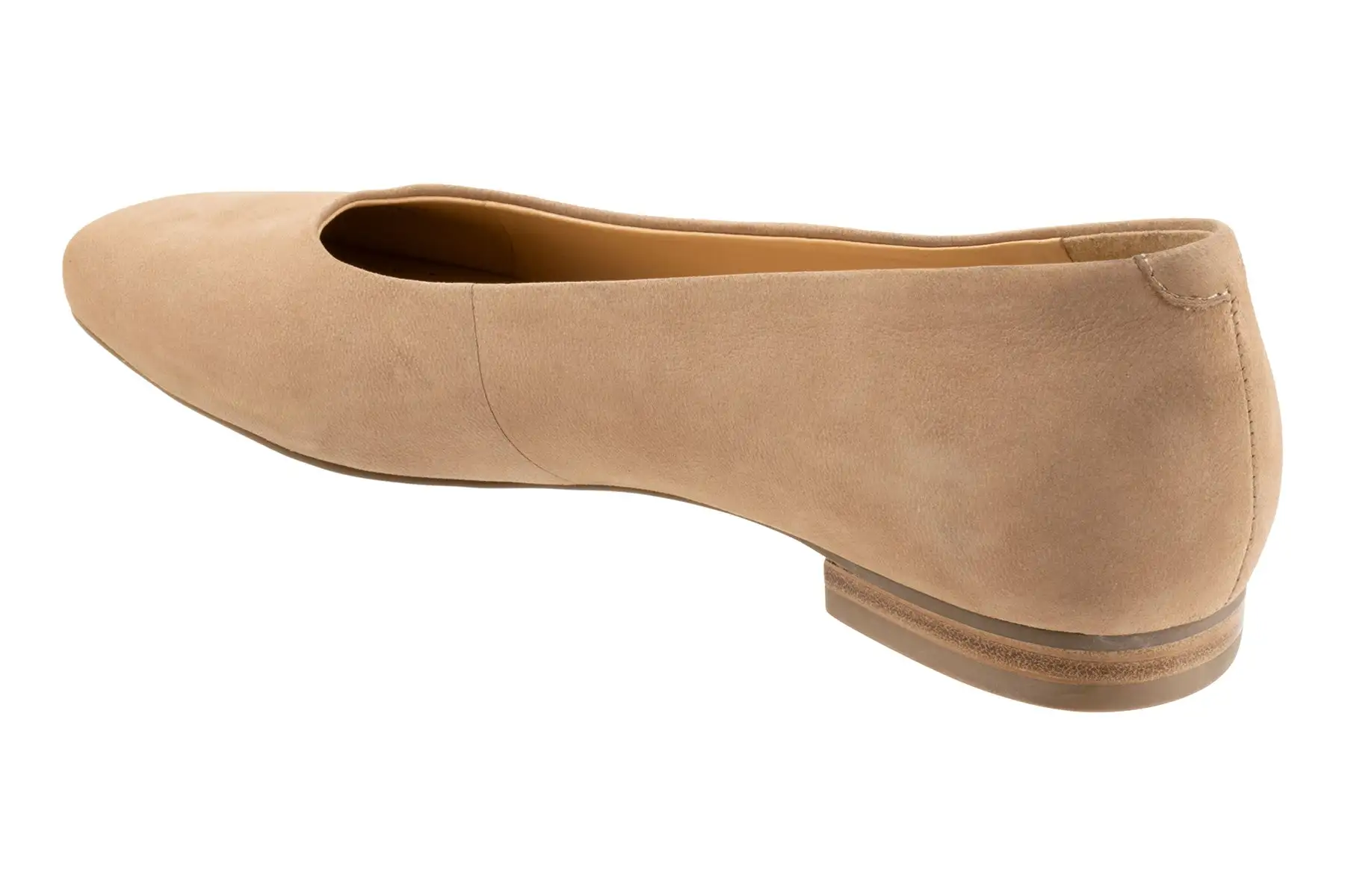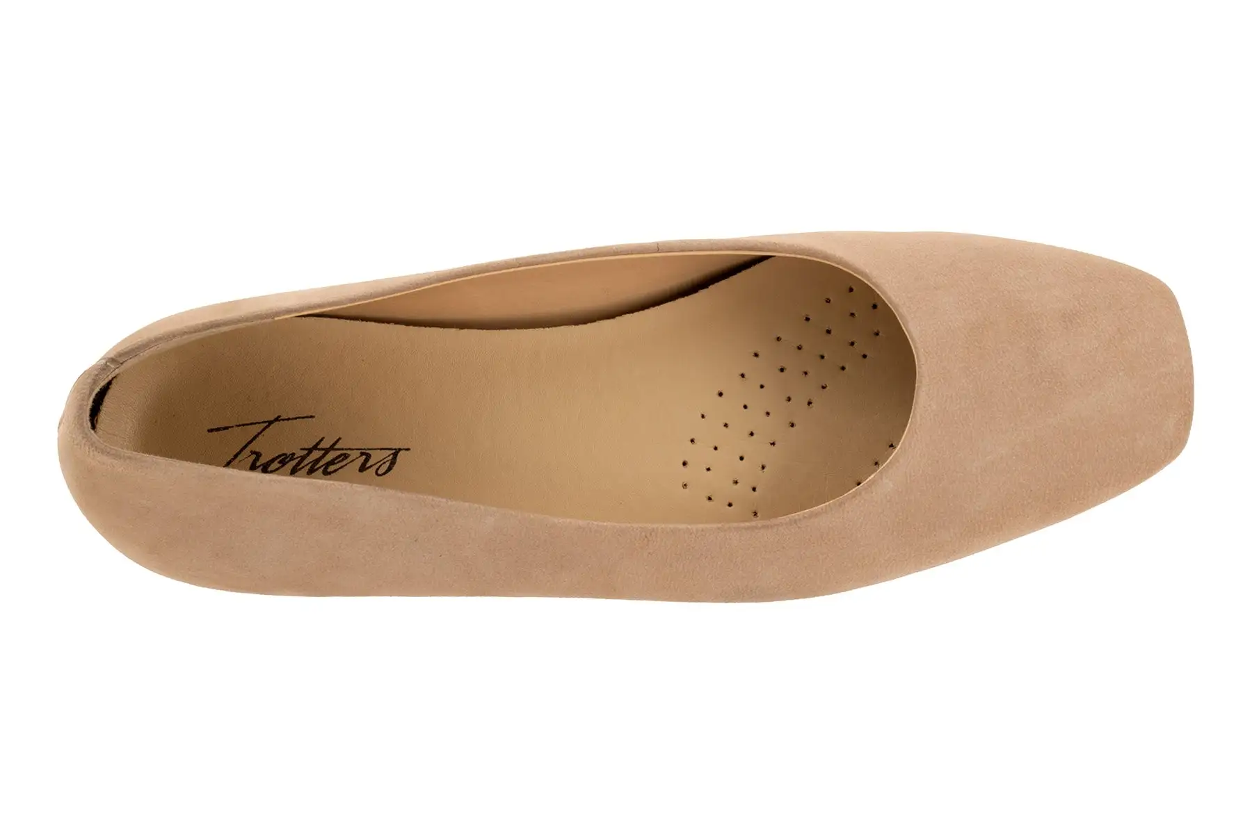 Trotters Honor is a modern cozy flat for many occasions. Features include leather uppers, removable EVA footbed, square toe and flexible rubber outsole. A soft rolled collar, low stacked heel and skimmer style will make these flats a new favorite.