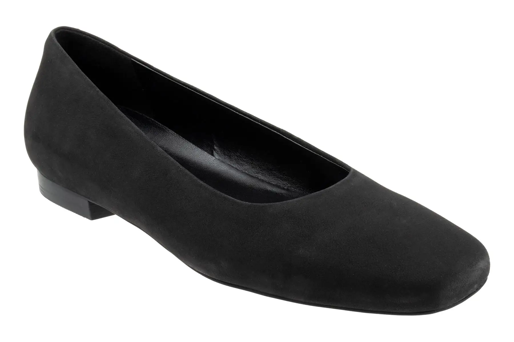Trotters Honor is a modern cozy flat for many occasions. Features include leather uppers, removable EVA footbed, square toe and flexible rubber outsole. A soft rolled collar, low stacked heel and skimmer style will make these flats a new favorite.
