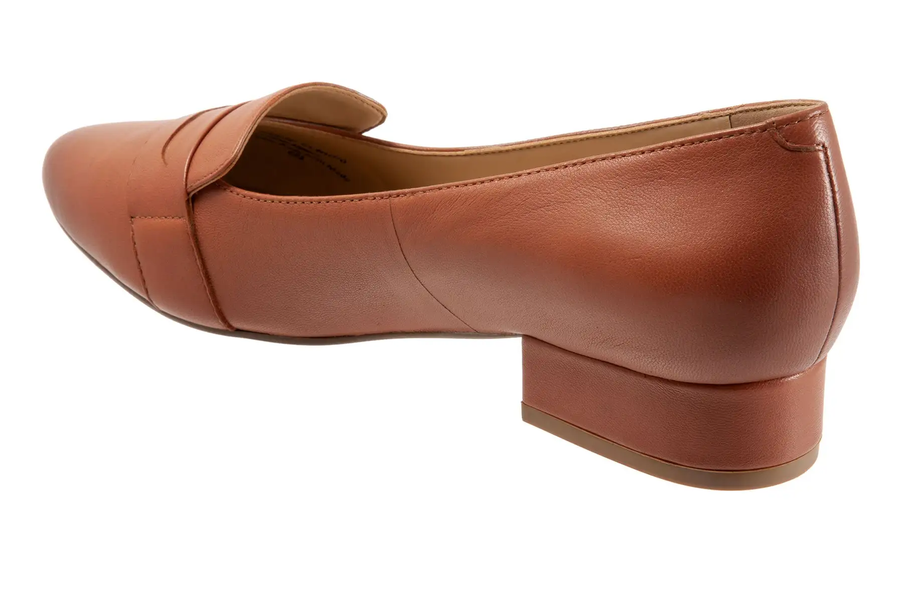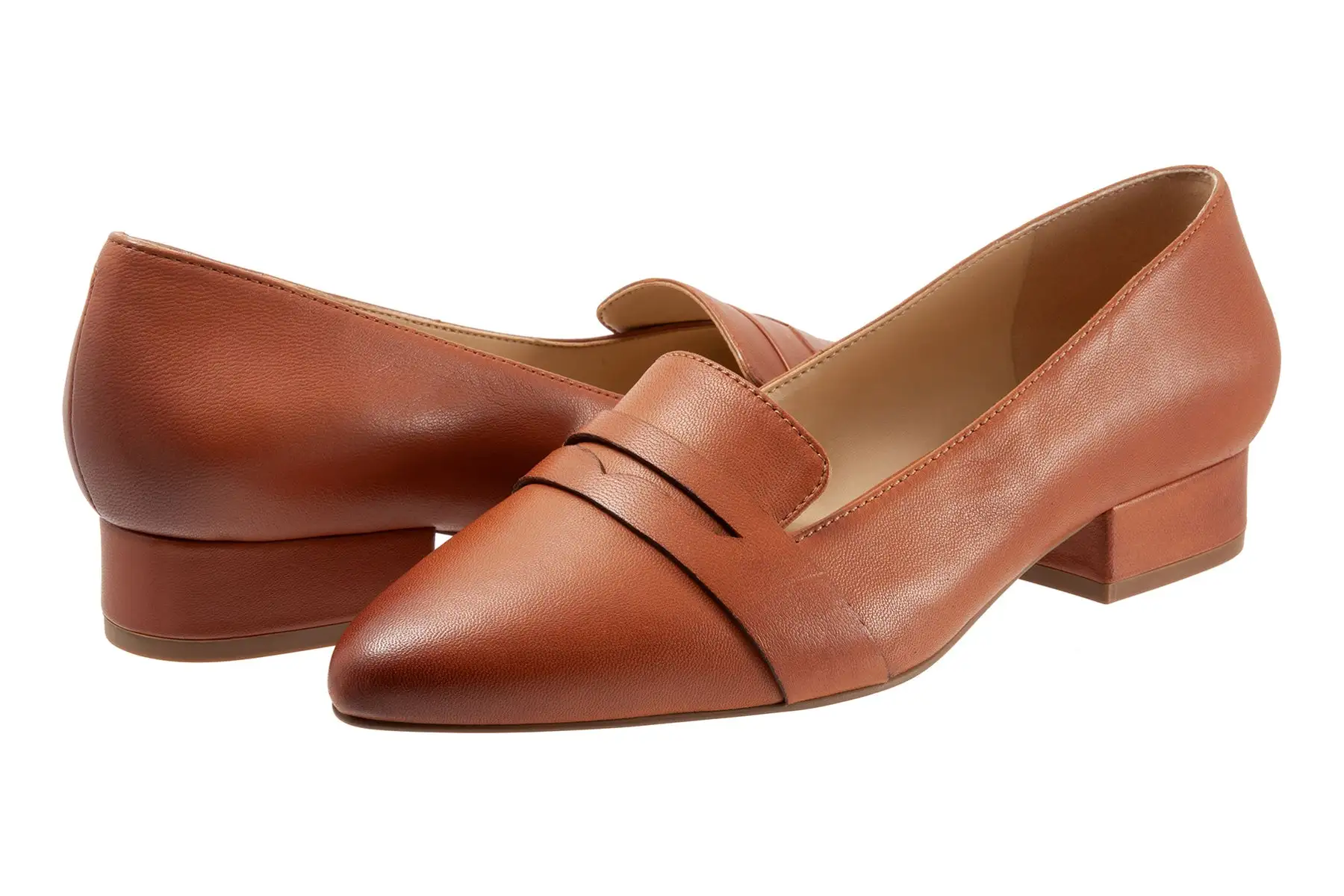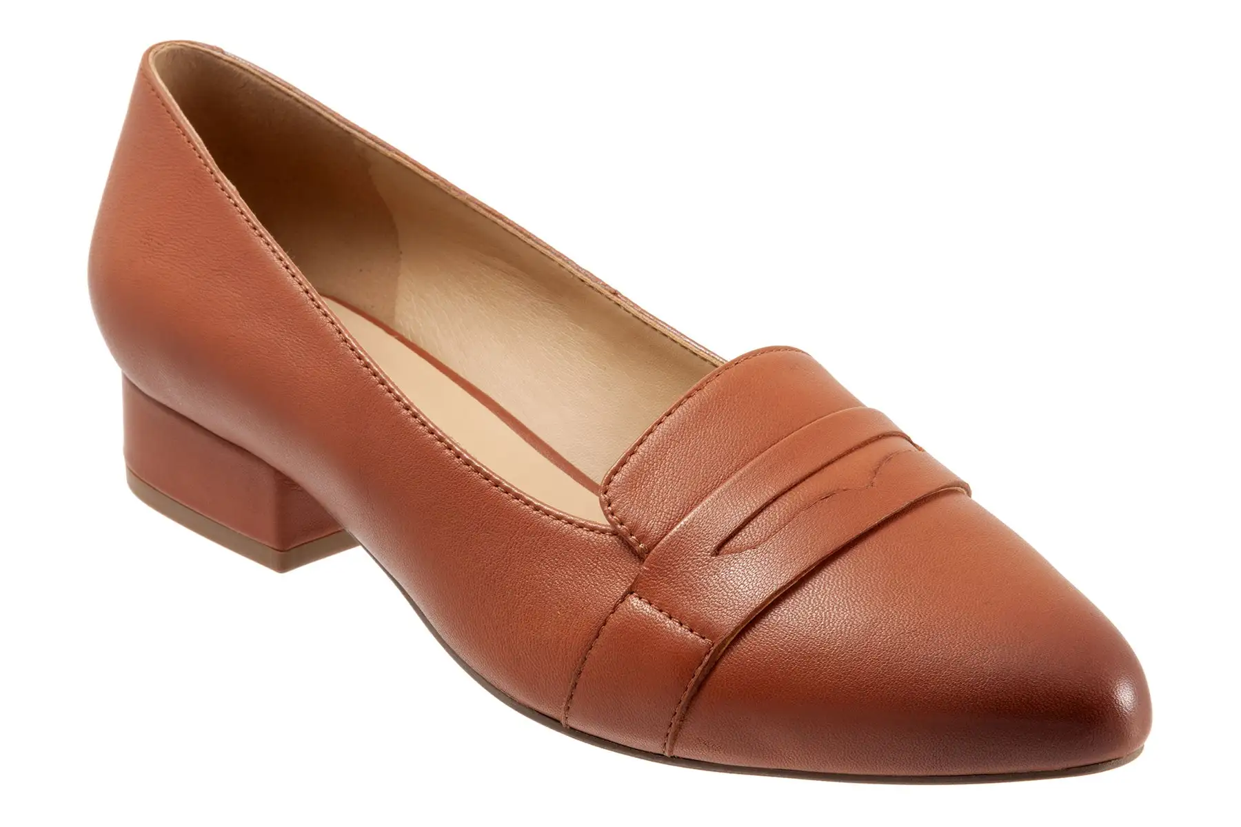 A painted edge keeper adds distinctive character to a pointy-toe pump atop a low, all-day wear heel perfected for the modern woman.