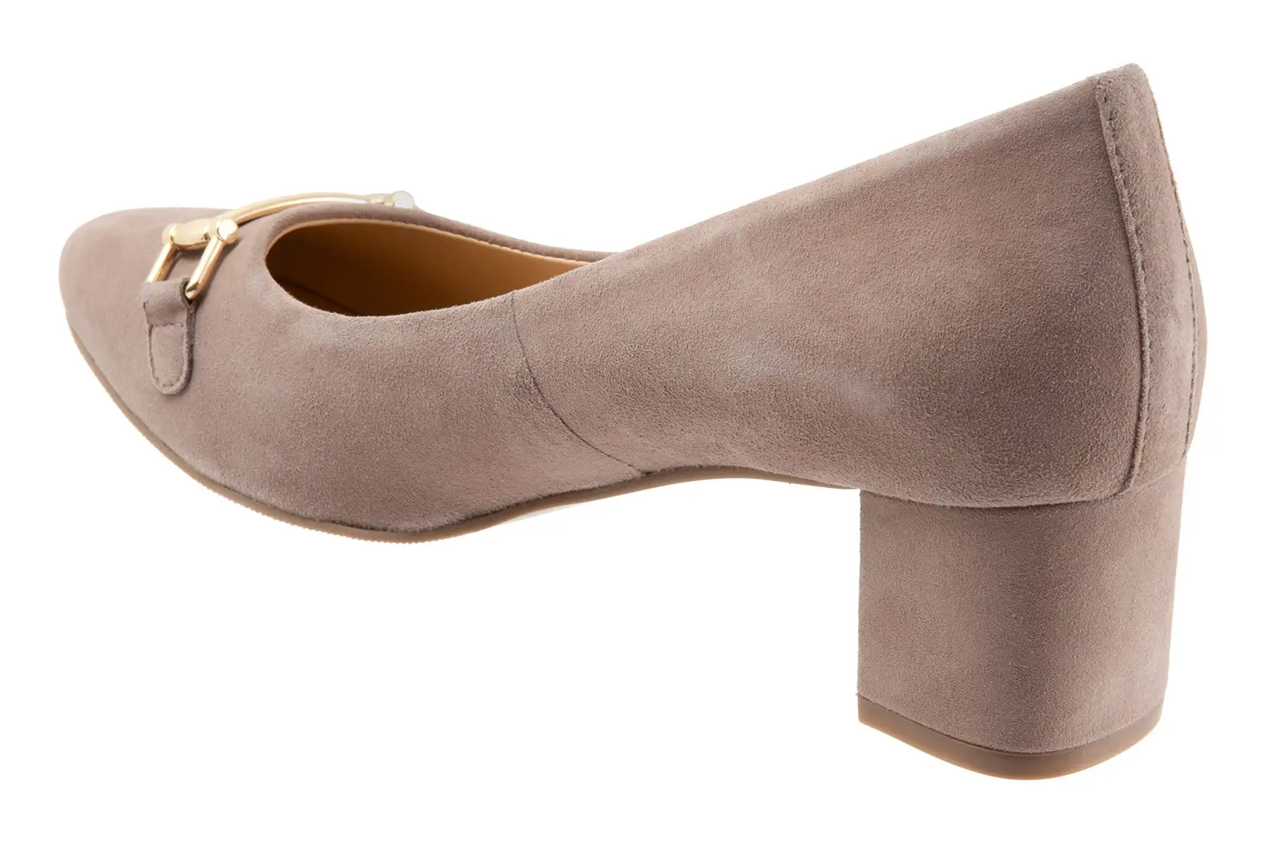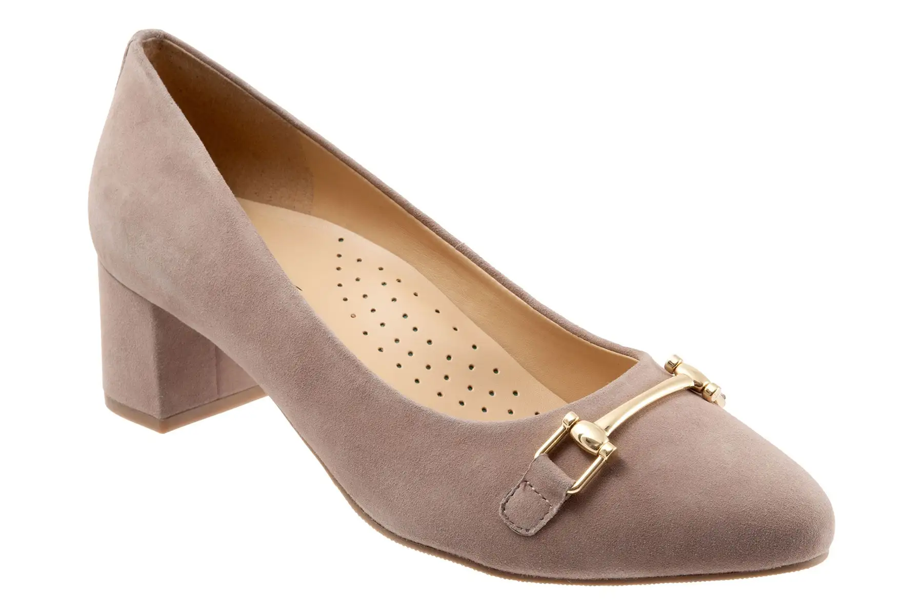 Kenzie is a pump with a modern block heel that delivers stability with a bit of height while the toe is dressed up with beautiful ornament. A cushioned footbed helps extend the wear from day into night.