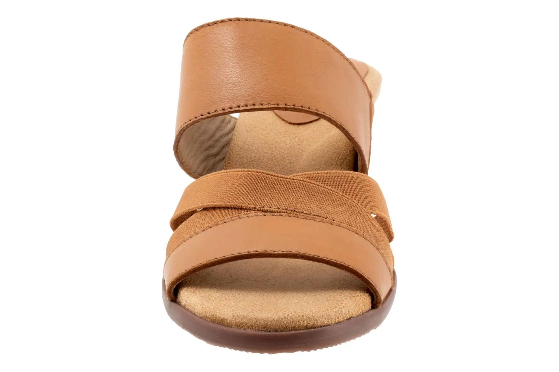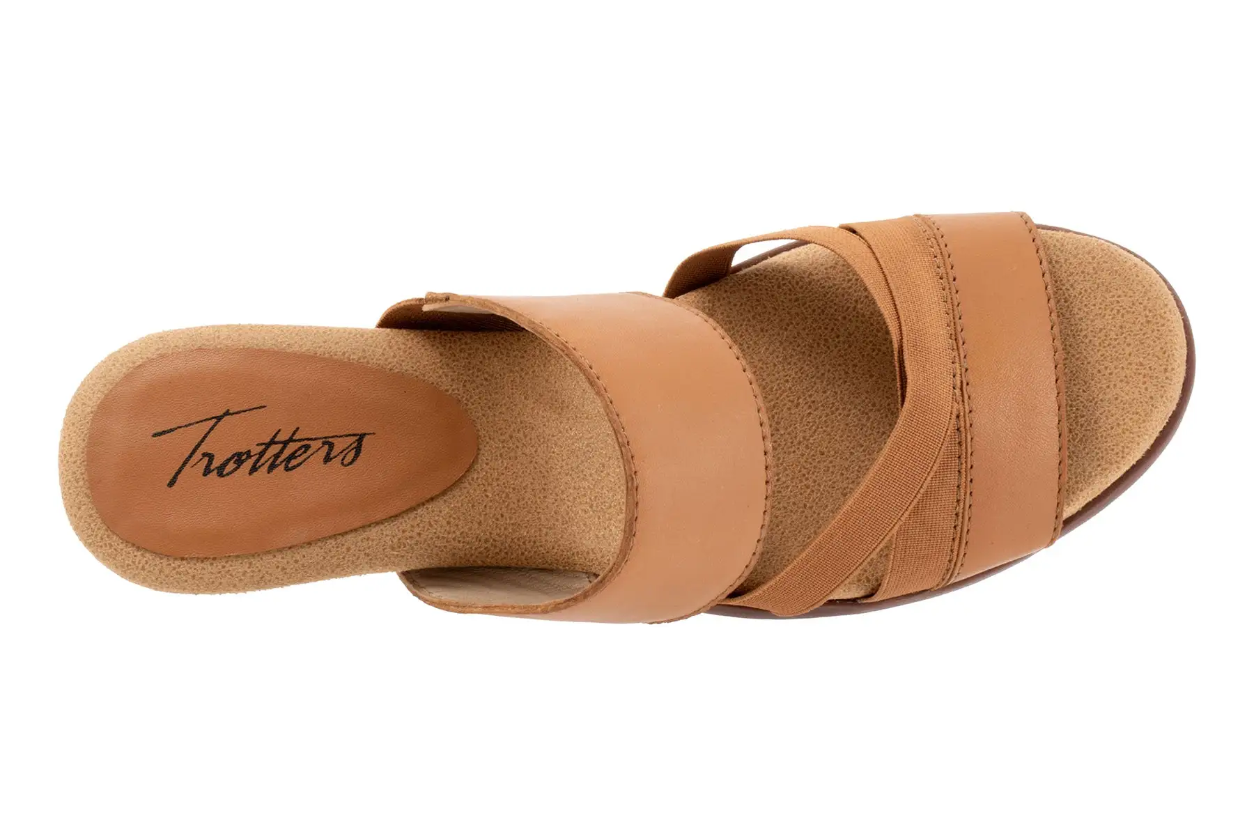 Trotters Maxine is a sleek dress sandal built for comfort. Crossing leather stretch straps and 2 1/4″ heel makes these dress sandals ideal for nights out. A cushioned footbed with soft lining and slip-resistant rubber sole completes this chic silhouette.