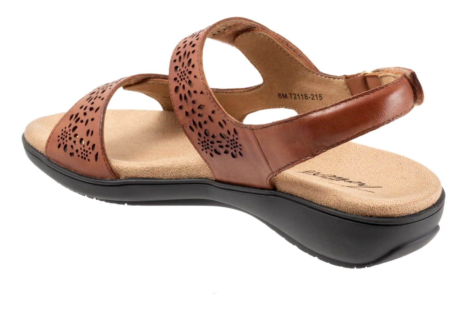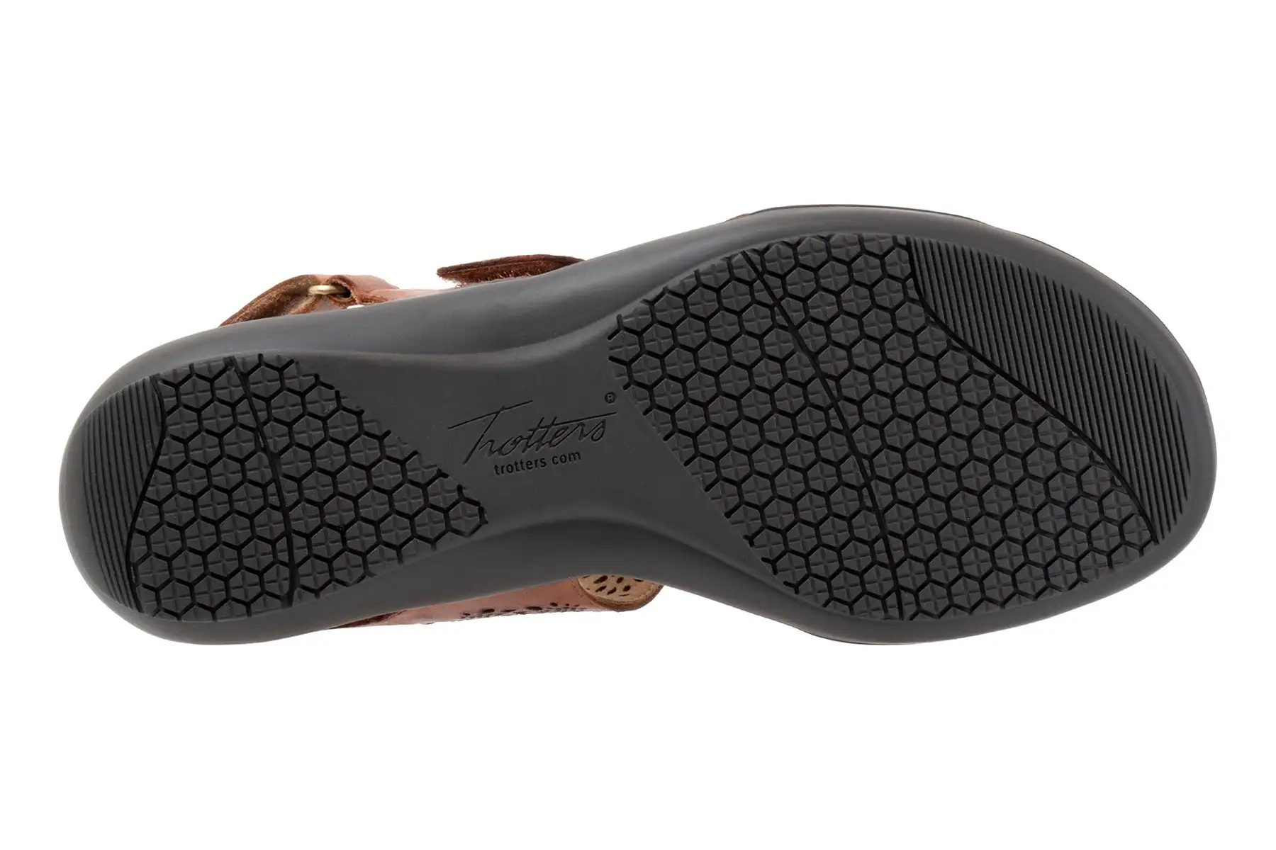 Perforated patterns and diamond edge stud hardware accentuate the adjustable straps of a fully cushioned sandal set on a comfort-focused wedge.Â