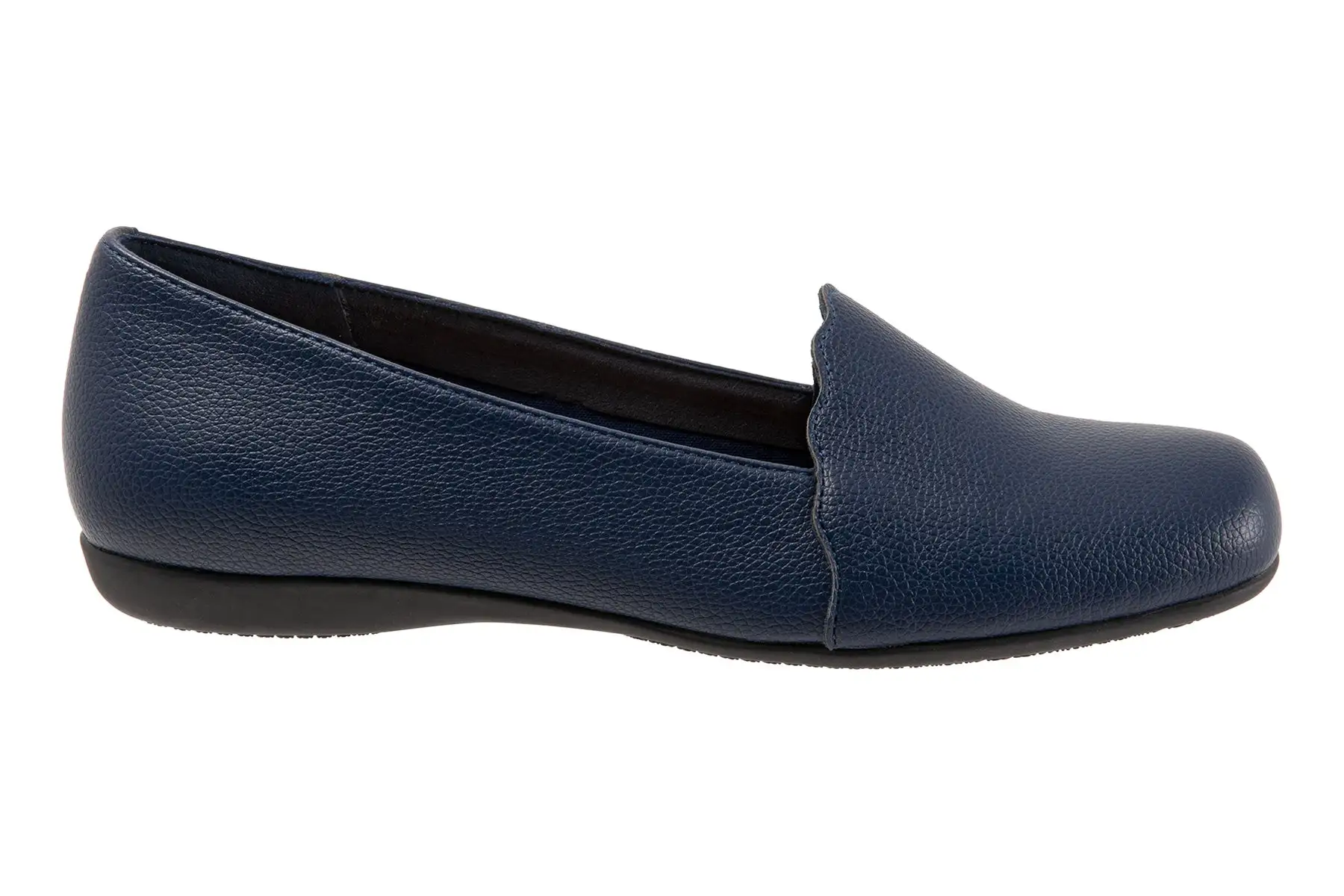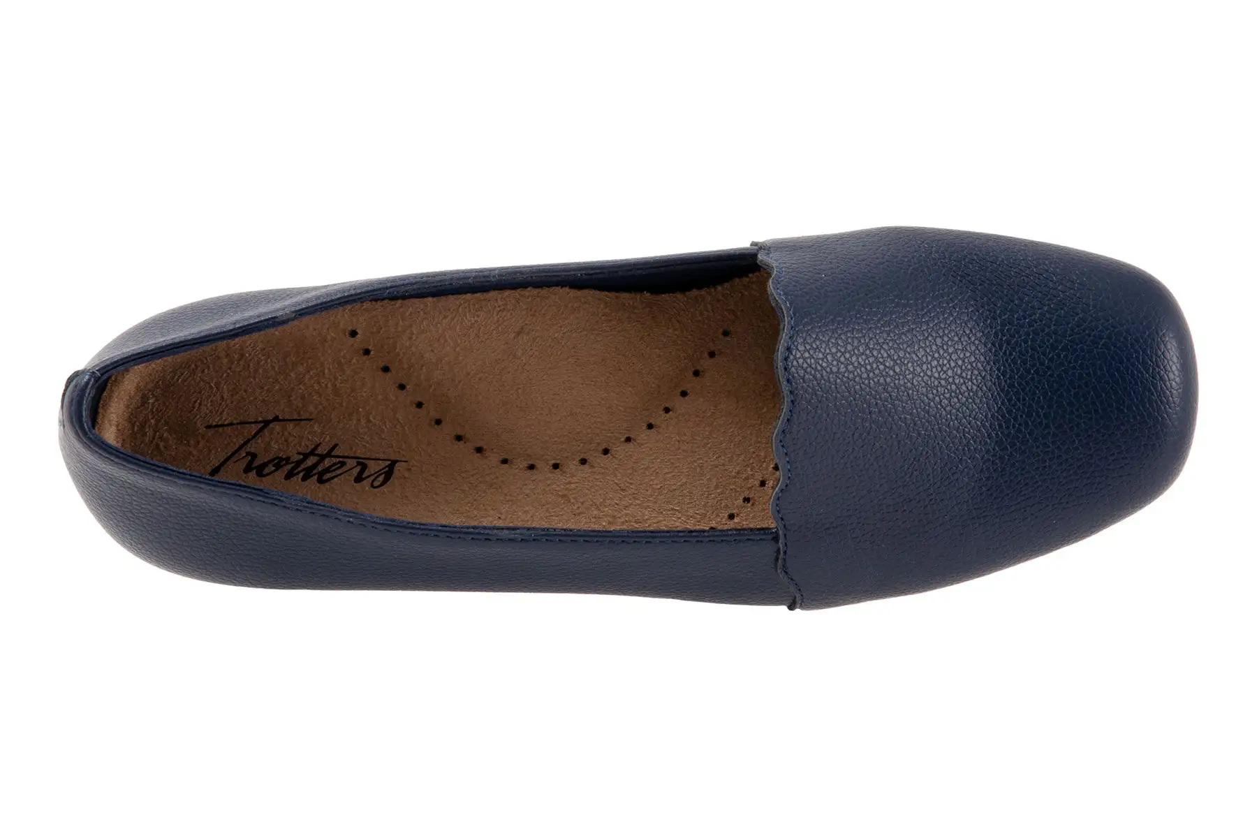 Scalloped edging gives the Sage loafer a cute feminine flare. The removable footbed is cushioned and has arch support. The long-wearing sole is a Trotters best seller.