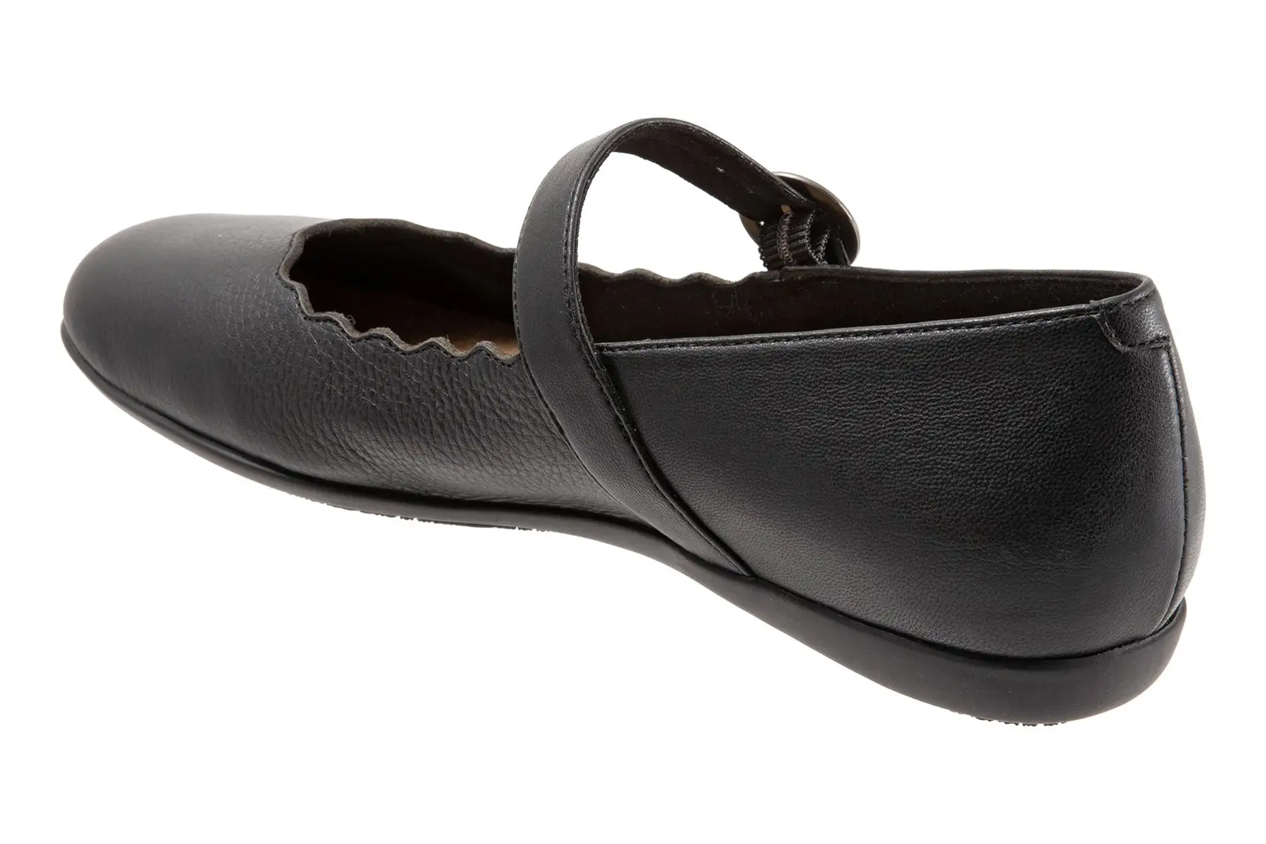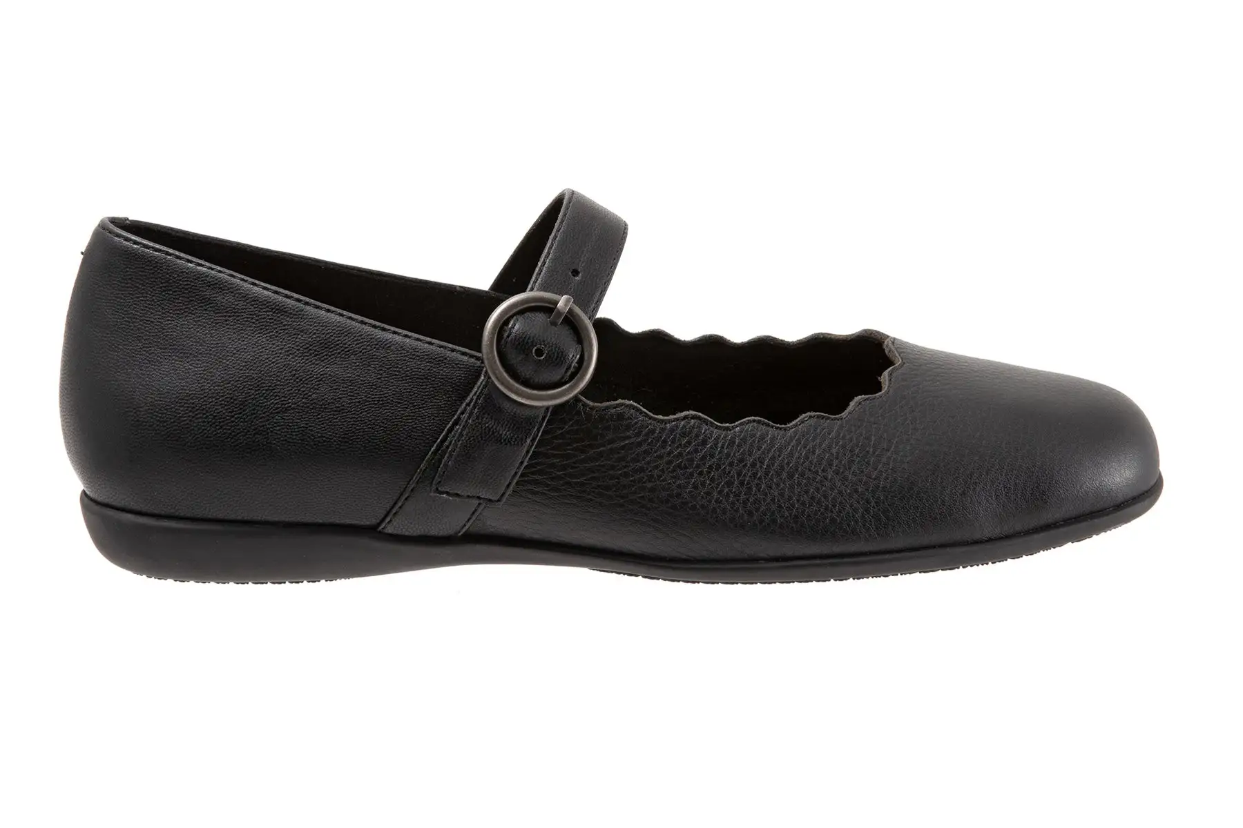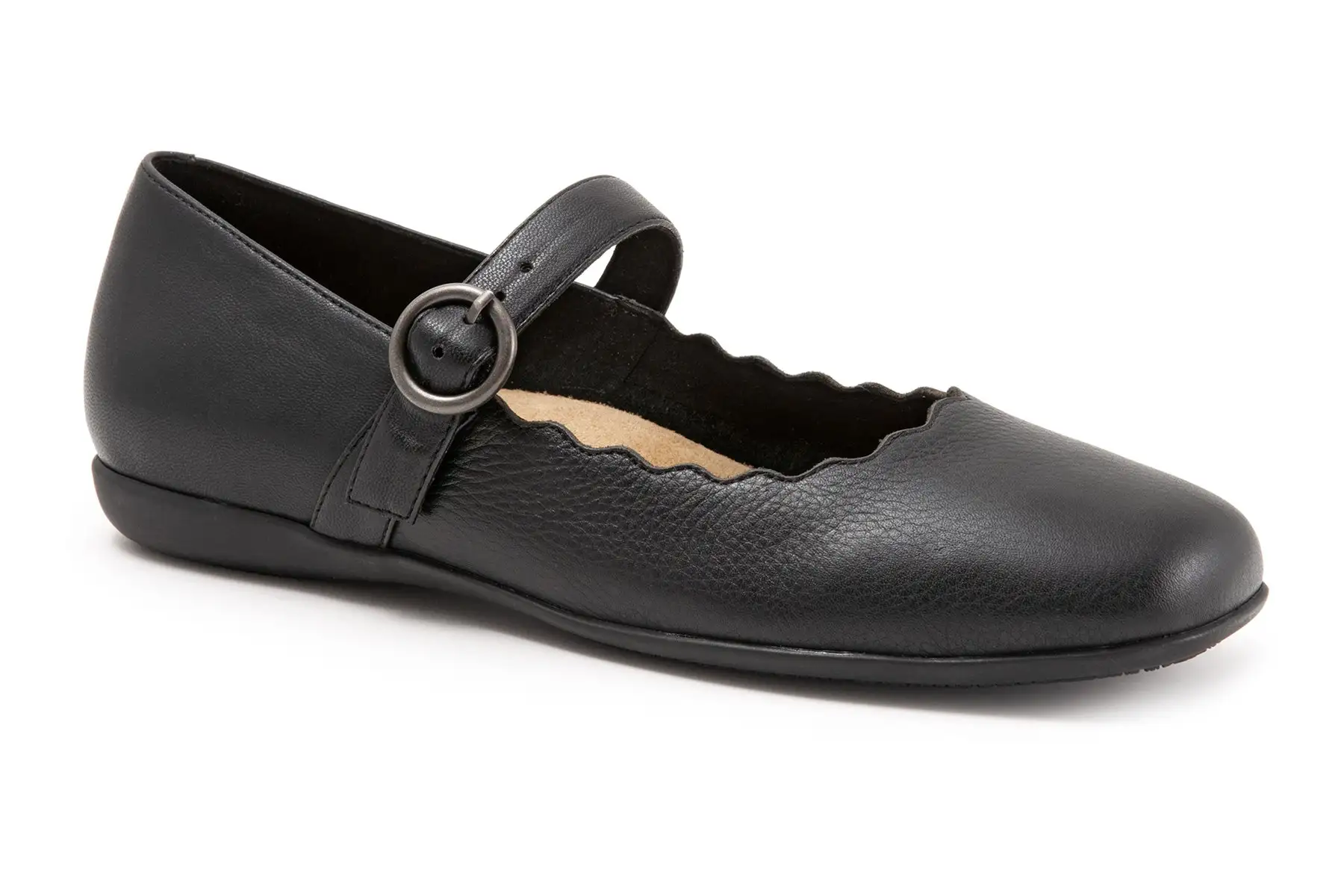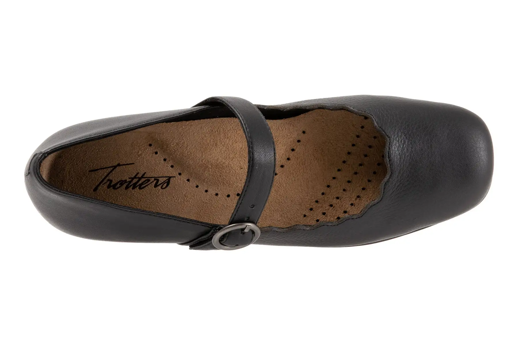 The Sugar flat sure is sweet with its stylish scalloped topline. The sure-fit Mary Jane makes it the perfect flat for walking. The removable footbed is cushioned and has arch support. The long-wearing sole is a Trotters best seller.