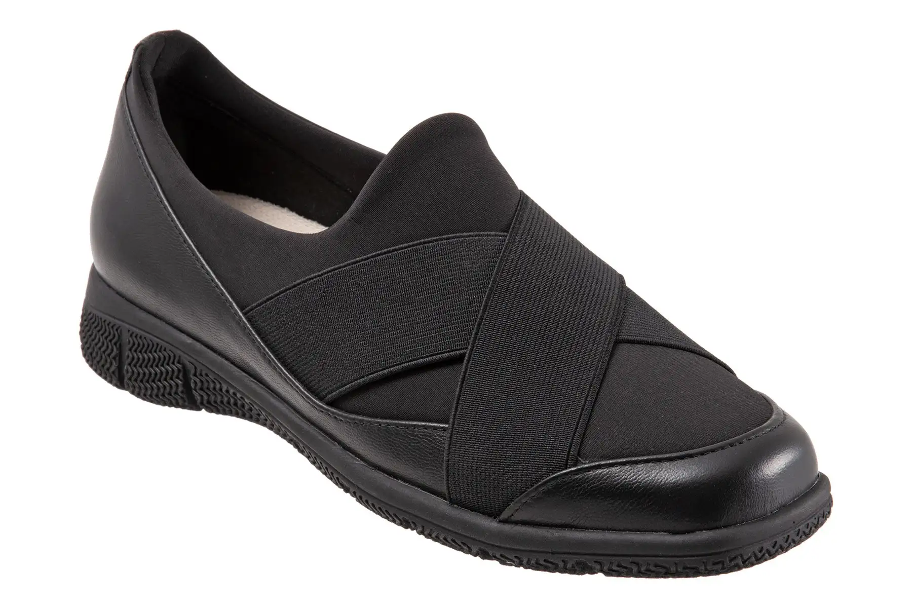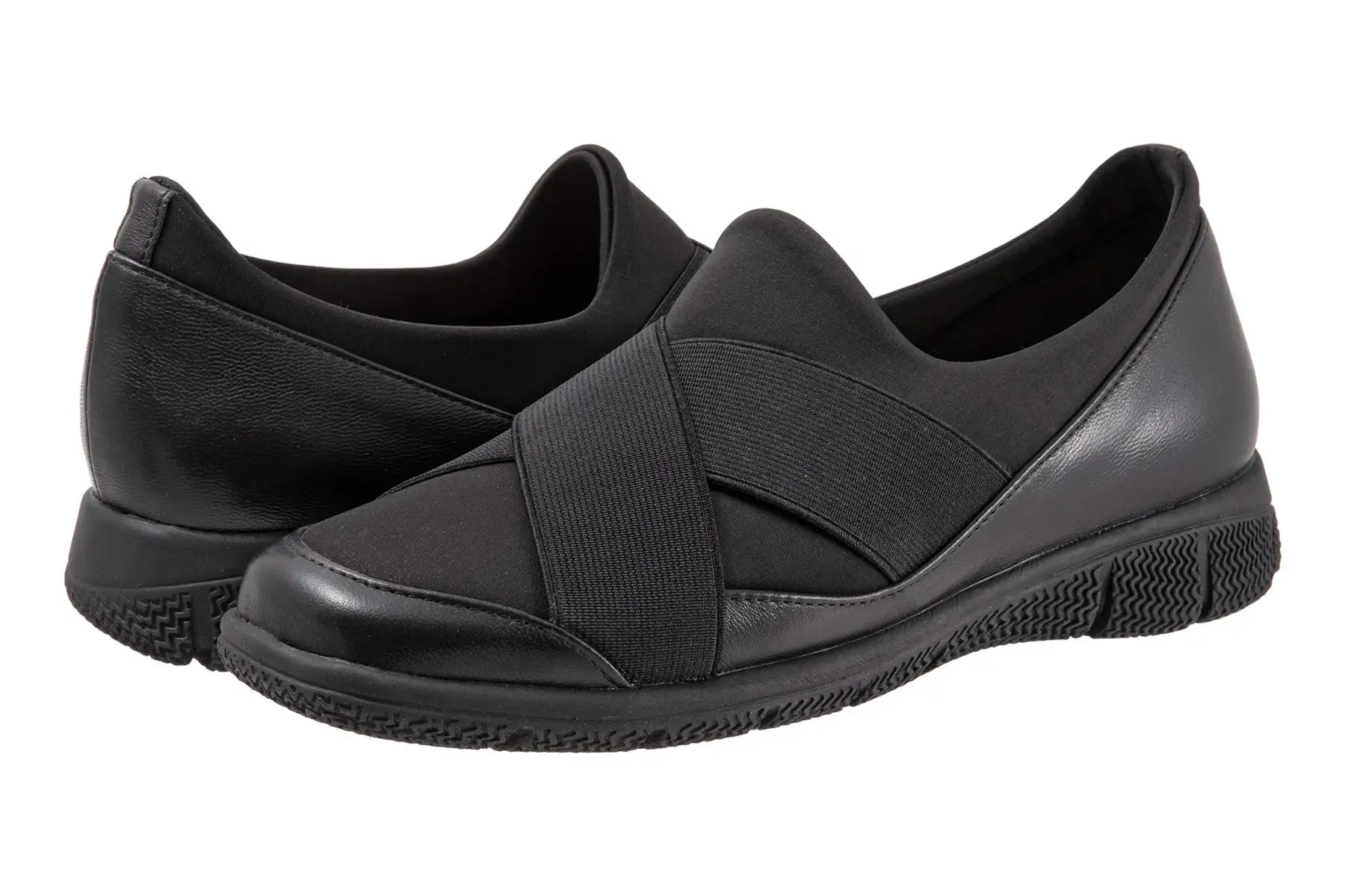 A slip-on sneaker with athletic-inspired lycra upper for flexible comfort is elevated by flattering crisscrossing bands for the ultimate sport-chic sneaker.