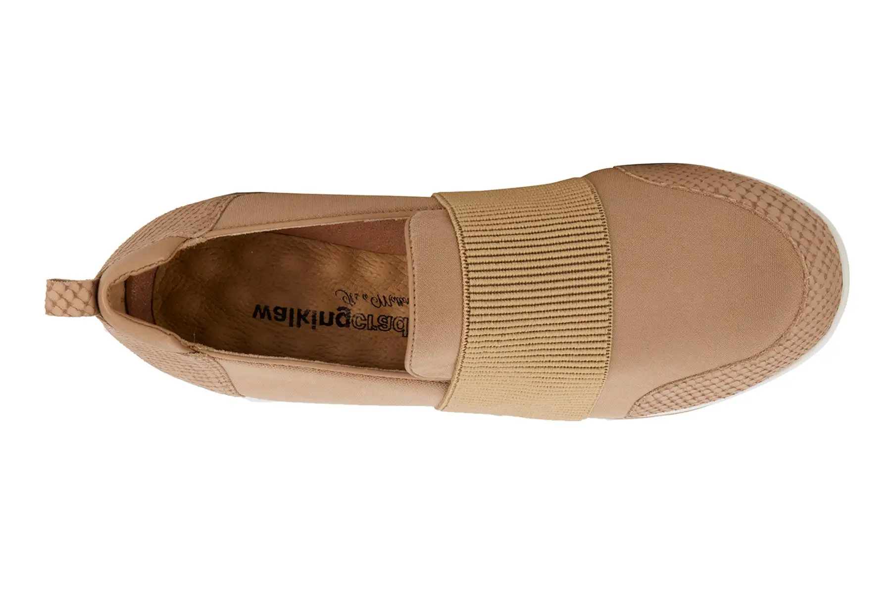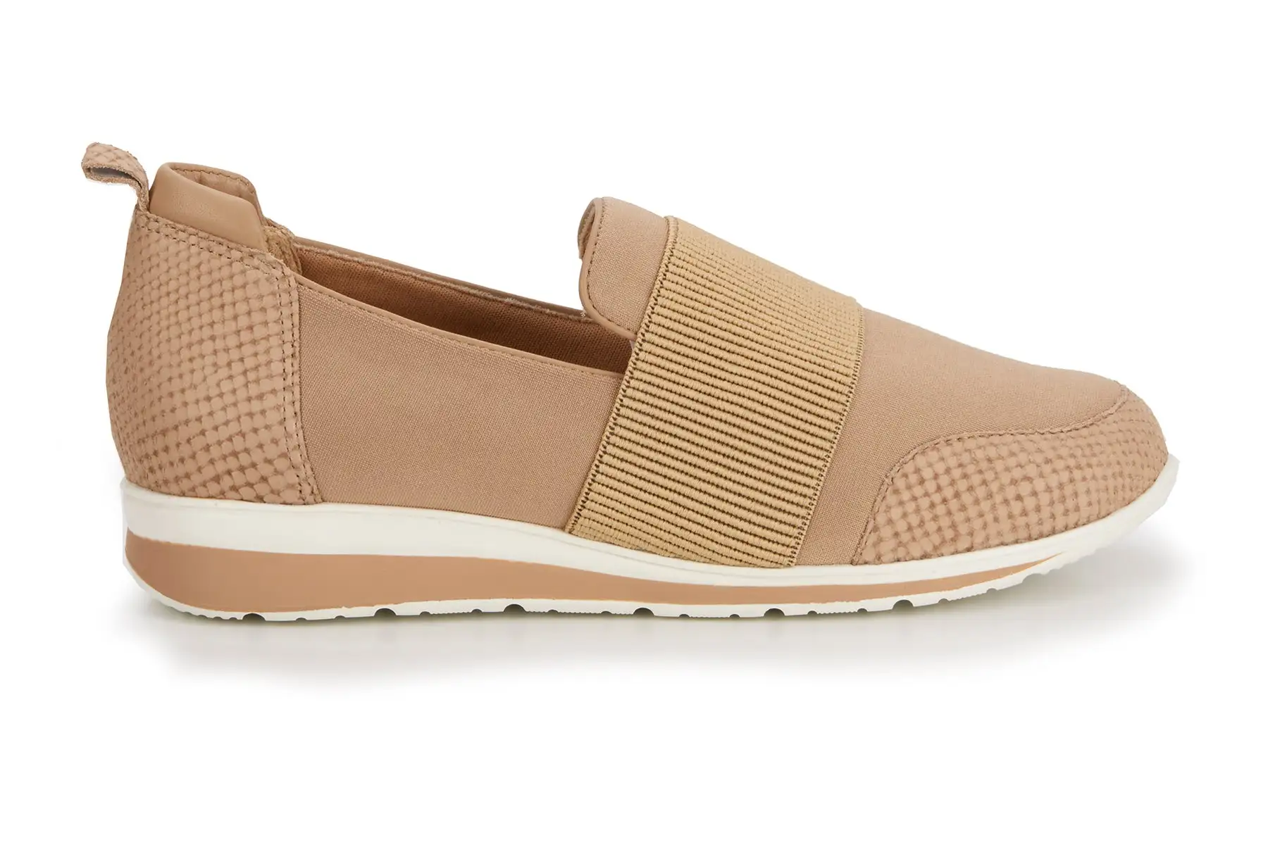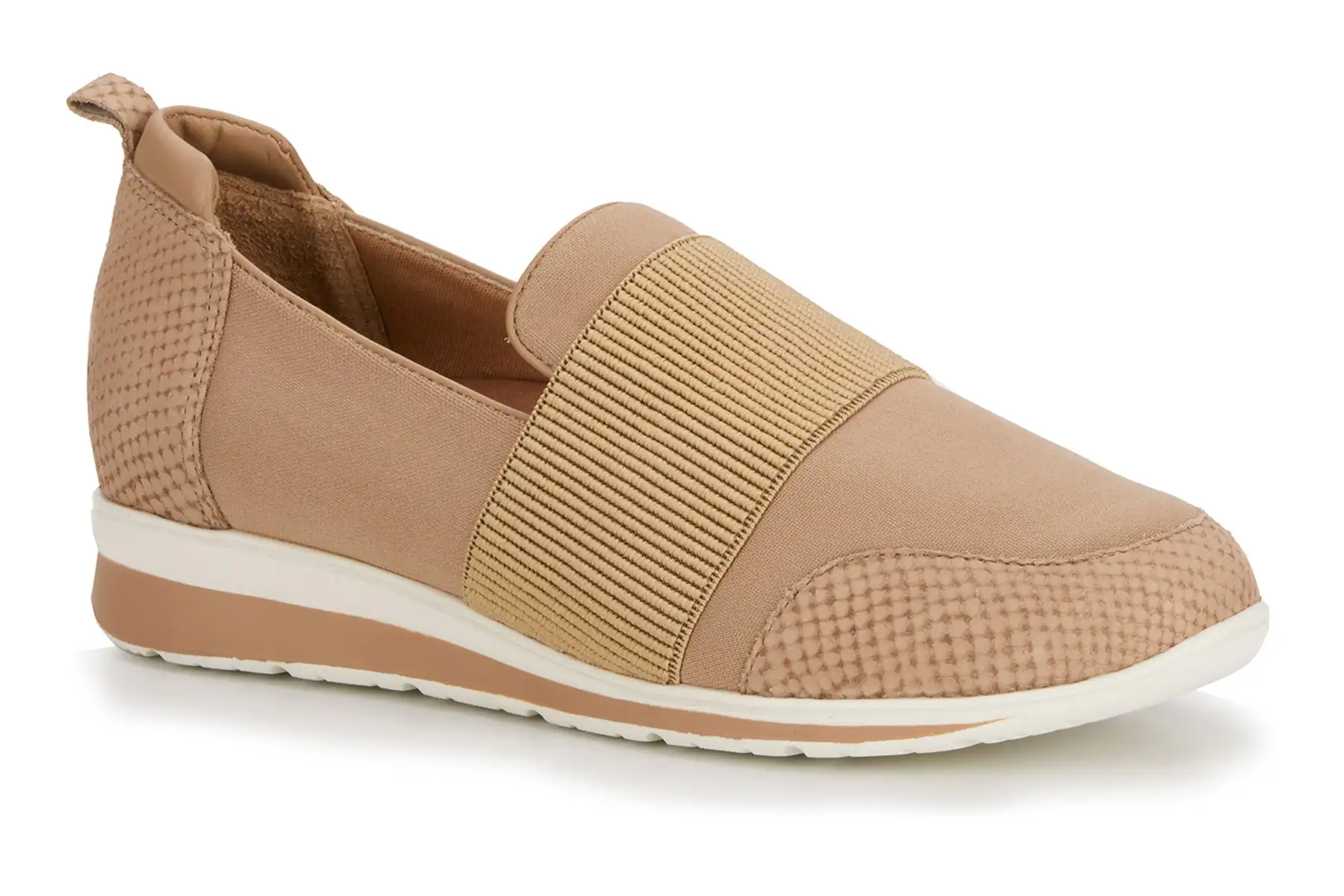 Step into comfortable support for work, play and every day! The Dakota slip-on sneaker features a combination of stretch fabric and matte snake print uppers, accented with a wide stretch gore and heel finger loop that makes it easy on and off! A padded collar helps prevent heel slippage. Part of our Metro+ collection, this active footwear features our signature Tiny Pillows insoles, enhanced arch support, an ergonomic heel cup and a lightweight, flexible outsole.