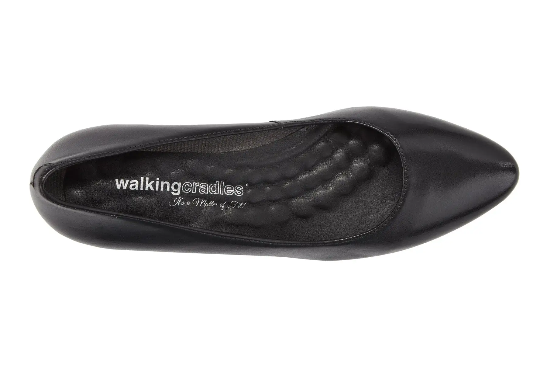 Walking Cradles Heidi is a stylish pump that makes a statement. Leather and suede uppers, removable insoles and 1 ¼ inch heel provide comfort and support. A man-made durable outsole and block, leather-wrapped heel makes these pumps a nightlife staple.